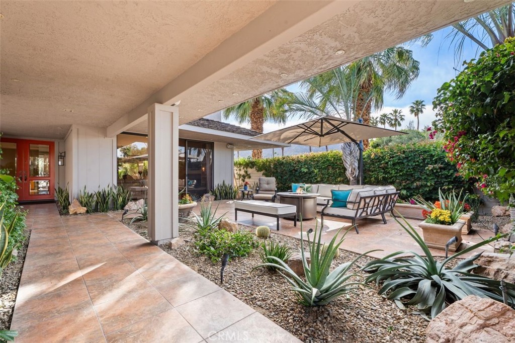 Welcome to your desert dream home in the heart of The Springs Country Club — where luxury, lifestyle, and location come together seamlessly. Perfectly positioned on the prestigious 3rd hole of the championship golf course, this beautifully maintained 3-bedroom, 3-bath residence offers nearly 2,700 square feet of thoughtfully designed living space. With its coveted south-facing orientation, the home captures breathtaking mountain views and abundant natural light throughout the day. A large, tranquil private front courtyard welcomes you with a serene Koi pond, creating an inviting outdoor retreat ideal for morning coffee or evening gatherings. Inside, neutral stone flooring flows through the main living areas, complemented by new contemporary low-pile carpeting in the bedrooms for a fresh, modern feel. Designed for effortless indoor-outdoor living, the spacious layout opens toward the golf course and mountain backdrop. The primary suite is a true sanctuary, featuring two generous walk-in closets and a well-appointed en-suite bath. The kitchen combines style and functionality with slab granite countertops, a gas range, and stainless steel appliances — perfect for both everyday living and entertaining. Additional highlights include a two-car garage plus a dedicated golf cart garage, both finished with durable epoxy flooring. Ideally located directly across from Eisenhower Medical Center and just minutes from shopping, dining, and entertainment at The River at Rancho Mirage and El Paseo, this home offers both privacy and convenience. Residents of The Springs Country Club enjoy a vibrant social scene, premier tennis and pickleball facilities, and a recently updated championship golf course — all within a secure, beautifully maintained community.
