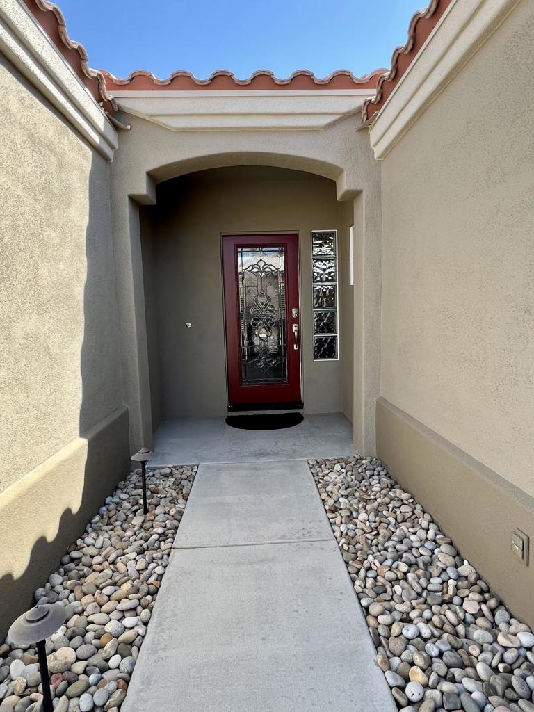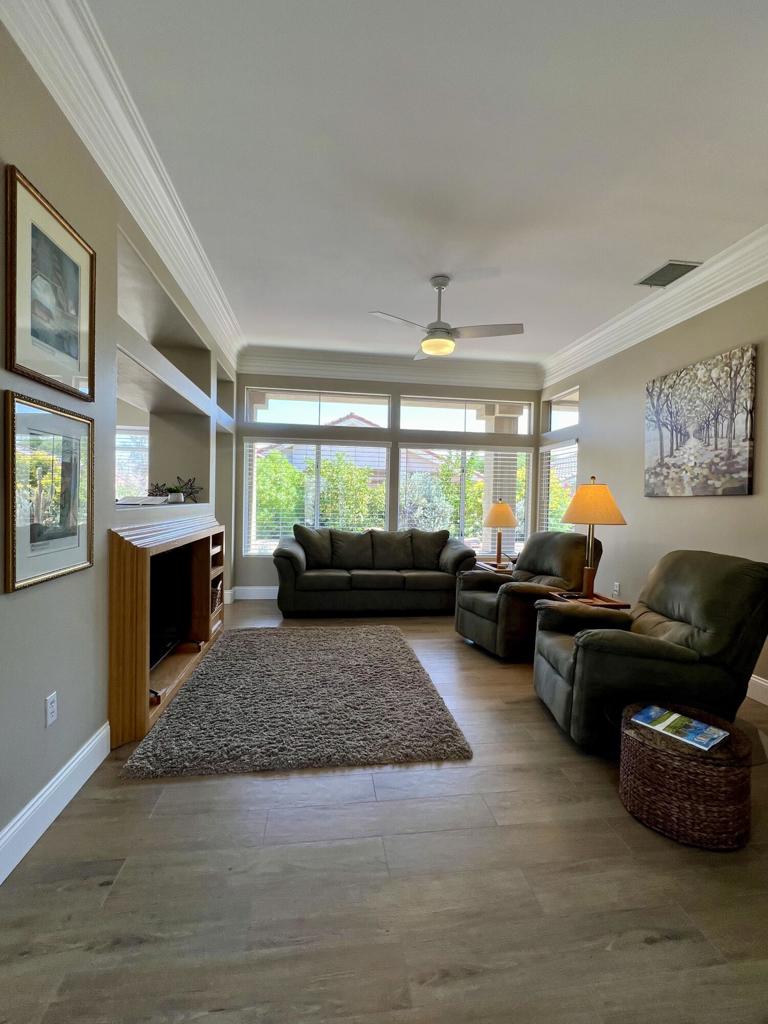 Short-term only; 4 months minimum. INCLUDES GOLF CART AND MONTHLY CLEANING! Available for 2026-2027 season. Sun City Palm Desert. Turnkey-furnished Gorham model on a corner lot. This one’s SPOTLESS and includes monthly cleaning. Enter through a beautiful leaded-glass front door. 2 bedrooms/2 bathrooms. 1157sf. Newer wood-look tile and new baseboards throughout. NO CARPET. Freshly painted inside & out. Newer stainless appliances including newer washer and dryer. Crown molding in living room. Newer 58” TV in living room; 39” TV in master. Newer toilets. Newer ceiling fans in every room. Newer dishes, flatware, pots ‘n pans. Newer gas BBQ. Newer king-size bed in master; twin beds in guest room. Inside laundry room with newer washer and dryer. Extended patio. Attached garage with direct access into house. Includes monthly cleaning, cable TV, internet, golf cart, & US/Canada calling. Electricity and Gas capped at $225 total per month.
