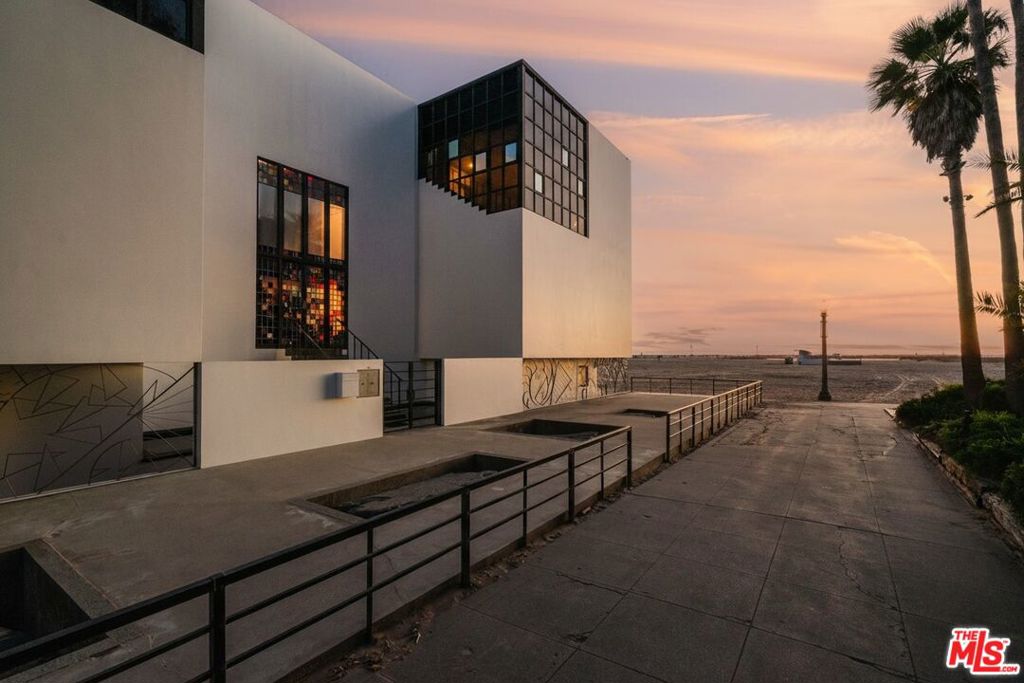 This iconic oceanfront residence in Marina del Rey is the epitome of premier coastal California living. Tucked within the ultra-private Marina Peninsula enclave, this extraordinary home delivers unrivaled serenity on a secluded stretch of the beach while staying close to the vibrant pulse of Venice Beach. Created by the renowned sculptor Robert Graham in close collaboration with dozens of iconic 1980s artists, this home integrates their extraordinary site-specific works throughout. The result is an irreplaceable living artwork, famously featured on the cover of Architectural Digest – a breathtaking fusion of ocean energy, marina views, and modern luxury. Enter through stunning stained-glass doors into open living and dining spaces bathed in natural light and filled with gentle sea breezes. A soaring two-story window with custom bronze accents frames panoramic beach views, creating heavenly tranquility within earshot of the ocean waves. The entertaining kitchen flows seamlessly into the dining room, anchored by a striking hand-blown Dale Chihuly chandelier, while a full secondary kitchen is tucked away discreetly in the back for effortless service and preparation. Ascend the architecturally pleasing staircase to a private office with tranquil ocean views and exquisite built-in cabinetry. Beyond lies the primary suite, a spacious and serene retreat with expansive floor-to-ceiling windows that invite abundant natural light and sweeping ocean vistas from sunrise to sunset. It includes refined etched Waterford crystal accents, automated shades, generous walk-in closets, a luxurious sauna-equipped bath, elevator access, and direct entry to the rooftop. The home is thoughtfully divided into two wings: the east wing houses the guest bedrooms, offering privacy and comfort, while the captivating secondary living room features a waterfall skylight, overhead mural, and angled marble floors. The private rooftop offers sweeping panoramas from Palos Verdes in the south to Malibu to the north across the Marina channel and Pacific to the west, all further enhanced by custom mosaics. Additional highlights and luxury amenities include a lower level with an informal theater or gym, powder room, and 4-car garage; a 4-stop elevator; mosaic lap pool; whole-house filtration; central vacuum system; and generator. Perfectly balancing the best of California beach charm with effortless access to world-class shopping, dining, entertainment, and travel, this home weaves an irresistible combination of art, nature, and sophisticated design into vibrant daily life. Your oceanfront sanctuary awaits.