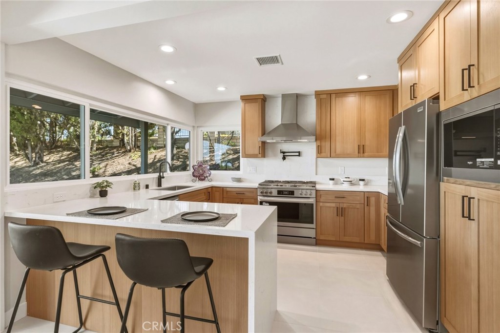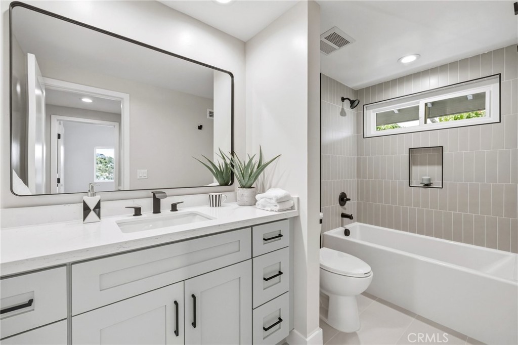 Tucked in the Tarzana hills, this remodeled 1970 contemporary 3-bed/3-bath, 2,516 sq ft home on a 17,749 sq ft lot blends modern lines with warm, comfortable living. A new front door opens to a tiled entry, soaring ceilings, and expansive windows that fill the main level with light and frame city and golf-course views. Wide-plank wood and tile flooring flow through the open living and dining areas, anchored by a sleek fireplace, with no carpeting anywhere. The reimagined kitchen is the hub of the home, with quartz waterfall countertops, custom cabinetry, stainless-steel appliances, and a layout that connects seamlessly to the dining and living spaces. Entertaining is easy, whether you’re hosting a dinner party inside or opening the doors to the backyard for true indoor–outdoor living. Downstairs, a large secondary living room with fireplace, full bathroom, and direct yard access offers flexible use as a media room, playroom, or optional 4th bedroom/guest suite. Upstairs are three spacious bedrooms, including a serene primary retreat, plus well-appointed baths and generous closet space Out back, a freshly remodeled pool becomes the centerpiece of the yard, surrounded by sleek paver hardscaping and framed by open city views. A relaxing Baja shelf offers a perfect spot to lounge in the water, while the spa adds a resort-like touch and an easy place to unwind. With plenty of room for seating and outdoor dining, this low-maintenance backyard is designed for both quiet evenings at home and effortless entertaining..