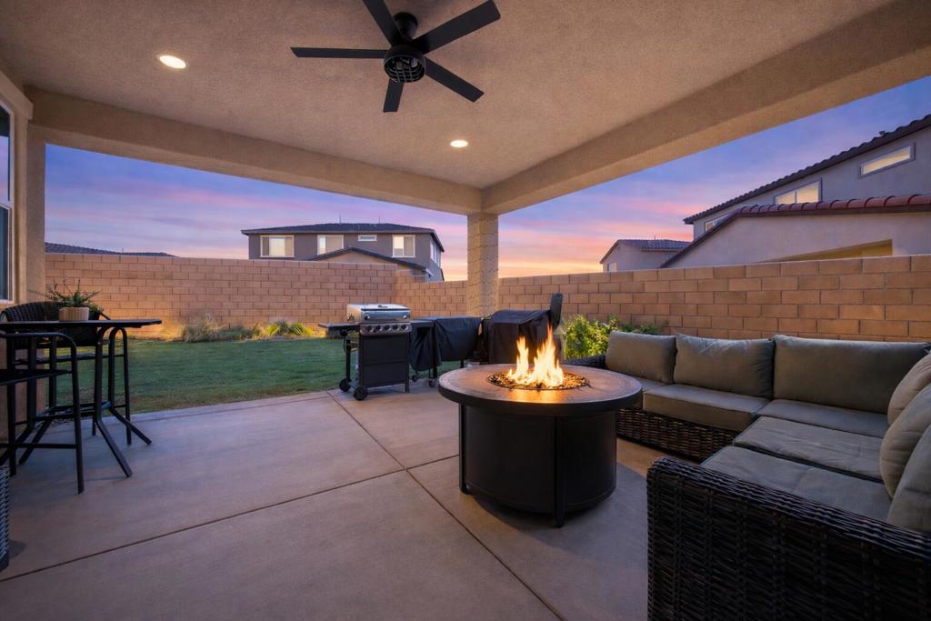 Oversized Premium Corner Lot 4 Bedrooms + 3 Baths Paid Solar Extra-Deep 3-Car Garage Gated Paradiso Community!Now offered at an improved price, this stunning 4-bedroom, 3-bath home is located in the desirable gated community of Paradiso and sits on an oversized corner lot of more than 10,000 sq. ft., showcasing true model-home style from the moment you arrive.Inside, soaring ceilings and designer plank-style tile flooring create a bright, open atmosphere ideal for both everyday living and entertaining. The gourmet kitchen serves as the heart of the home, featuring quartz countertops, an eye-catching backsplash, stainless steel appliances including double ovens, a large center island with seating, recessed lighting, and a walk-in pantry. A spacious formal dining room offers flexible use as a home office, media room, or play space.The split floor plan provides a private primary retreat with direct backyard access, a large walk-in closet, dual vanities, a soaking tub, and a separate walk-in shower. Three guest bedrooms are thoughtfully positioned on their own wing and include upgraded carpet, ceiling fans, custom window shades, and ample storage.Outside, the expansive yard wraps around both sides and the rear of the home, creating an exceptional blank canvas for a future pool, putting green, outdoor kitchen, or fire-pit lounge under the stars. Paid solar helps keep energy costs low.A standout feature of the home is the oversized three-car garage, approximately 10 feet deeper than standard, with high ceilings, LED lighting, and space for trucks, toys, or additional storage… truly a garage lover’s dream!! Low HOA dues include cable and Wi-Fi, and the home is conveniently located near top schools, shopping, I-10 access, and world-class golf and tennis. This property perfectly blends everyday comfort with resort-style living, making it an ideal primary residence or desert getaway!