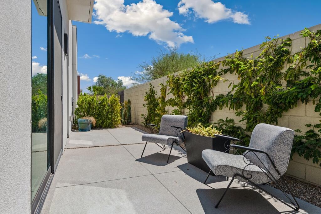 Reduced and priced to sell ! Exclusive private gated community of Miralon in Palm Springs, just minutes from downtown! This PLC Communities built home comes with OWNED SOLAR, providing energy efficiency, savings, and long-term value. The private yard features a sparkling 8×15 cocktail pool with tanning shelf and umbrella sleeve, outdoor shower, programmable pool heater, drip irrigation, and landscape lighting–all framed by a peek at the San Jacinto Mountains. Inside, the modern open floor plan is filled with natural light. The kitchen boasts premium Bertazzoni & Bosch appliances, a Samsung refrigerator with interior beverage center, crisp white cabinetry, and a large island with bar seating. Smart home upgrades include Brilliant switches, Honeywell smart thermostat, programmable exterior lights, Ring system, and keyless entry. All bedrooms are spacious, including a primary retreat with outdoor access. With 3.5 baths, three with walk-in showers, the home blends comfort and style. Community amenities include lakes, dog parks, walking trails, plus a clubhouse with pools, spa, gym, yoga/Pilates, bar, demo kitchen, herb gardens, olive tree groves and more!