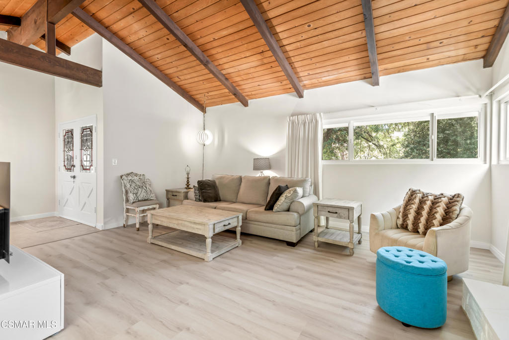 Highly desirable custom single story home located south of the boulevard in one of Woodland Hills premier neighborhoods! This custom 3+2 home features freshly painted interior & exterior, upgraded Milgard windows, and laminate wood-like plank flooring & refinished parquet wood flooring throughout. Beautifully remodeled bathrooms. Double front door entry with large foyer. Oversize Kitchen with white tile counters, lots of cabinets, stainless steel appliances including double oven and separate area for additional kitchen prepping, storage, sewing counter, etc. Kitchen opens to large family room. Huge living room with beautiful open vaulted beam ceilings, gas white brick fireplace and separate formal dining room. Large primary bedroom with lots of windows for backyard views, walk-In closet including built in organizer and beautifully remodeled ensuite bath includes marble-like tile shower/tub enclosure, wood vanity with white stone countertop and newer hardware & fixtures. Nice size secondary bedrooms and a beautifully remodeled Jack&Jill bath that features marble-like tile flooring, white vanity with marble countertops, large shower with marble/like tile & glass enclosure and newer hardware and fixtures. Indoor laundry area with lots of hall storage cabinets. Peaceful backyard with large concrete patio and neatly low maintenance landscaping. Gated side entrance for additional parking and a large grassy turf area .Newer oversize and insulated shed. 2 car covered carport with large storage cabinets. Tankless water heater. Home has a Clear Termite and Metro Retro Compliant. One of a kind custom home. Come make it yours!