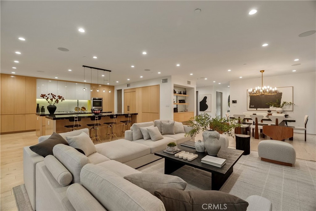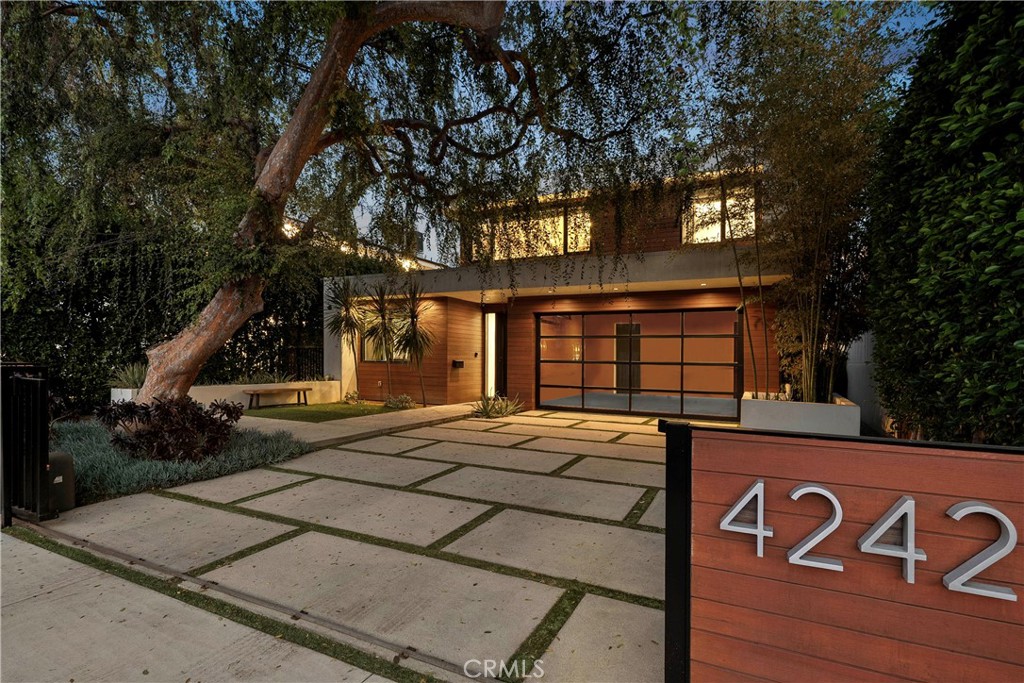 Situated on a gated lot in the desirable Footbridge Square neighborhood of Studio City, this modern architectural gem blends cutting-edge design with impeccable craftsmanship and high-end finishes throughout. Designed for modern living, this open-concept floor plan is highlighted by a gourmet chef’s kitchen equipped with top-of-the-line appliances, dual islands and a large walk-in pantry. The living and formal dining room boast floor-to-ceiling sliding glass doors that flood the space with natural light and open to create a seamless indoor-outdoor flow. Surrounded by mature privacy hedges, the entertainer’s backyard offers a sparkling pool/spa with a safety gate, covered patio and low maintenance artificial turf yard. Upstairs, you’ll find three generously sized ensuite bedrooms, each with its own walk-in closet, alongside a spacious loft area. A true sanctuary, the primary suite features a large walk-in closet with custom built-ins and a sumptuous bathroom, complete with a soaking tub, walk-in rainfall shower and double vanity. Additional highlights include two main-level bedrooms (one of which has an ensuite bathroom), a dedicated laundry room, high ceilings throughout, a two-car garage and state-of-the-art Control4 smart home system that controls the built-in speakers, security cameras, thermostat, lighting and more. Live in the heart of Studio City, within the top-rated Carpenter School District and just moments away from trendy restaurants, boutique shops, the Studio City Farmers Market and so much more.