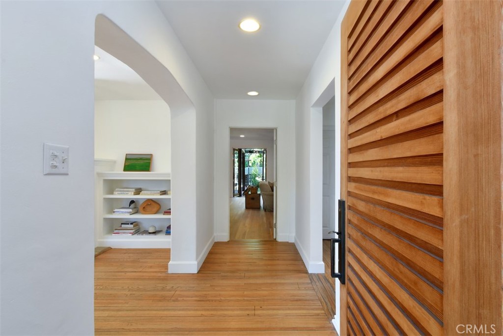 Artsy Laurel Canyon vibes in coveted Colfax Meadows. Excellent school district, restaurants, cafes and parks. This custom two-story home is filled with natural light, lush green views, and exceptional privacy. High ceilings and wood floors are some of the highlights. A calm bright aesthetic flows from the open kitchen to the expansive great room with fireplace, built-ins, and walls of glass opening to a vine pergola patio and separate pool area—ideal for entertaining. Formal dining with French doors leads to the wisteria drenched private patio perfect for entertainment or children’s play area. Next to kitchen is a butler’s pantry, powder room, and direct-access two-car garage with storage. Also downstairs are a formal living room with a fireplace and built-ins, and a private bedroom suite with full bath, perfect for guests or office. Upstairs features three bedrooms and a sun-filled sitting room. The primary suite offers a fireplace, large sitting area, walk-in closet, and spa-like bath with soaking tub, double sinks, and separate shower. The two additional bedrooms share a full bathroom. Upstairs landing can be used as mini library or extra workspace. Corner lot for extra privacy and ample street parking for guests. Custom built and reimagined by architect Richard Olander. Moments to Tujunga Village, Farmers Market, Aroma Café, Zoned Carpenter School. A home you shouldn’t miss… its special!