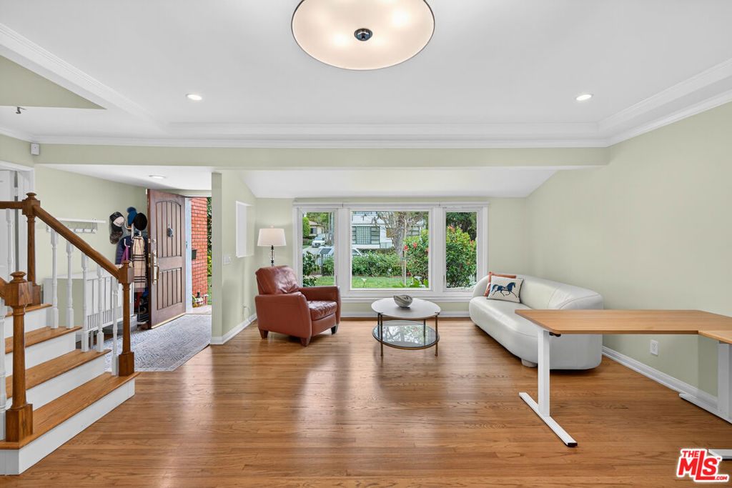 Located on a quiet, tree-lined street north of Montana Avenue, 434 21st Place is a beautifully updated 4-bedroom, 3-bath home offering 2,560 square feet of inviting, light-filled living space. The inviting living room features rich hardwood floors, classic crown molding, a fireplace, and expansive picture windows that frame lush greenery and flood the space with natural light. Its open layout flows effortlessly into the breakfast area and kitchen, creating an ideal setting for relaxed daily living and seamless entertaining. Elegant French doors lead directly to the backyard retreat, bringing the outdoors in and enhancing the home’s sense of indoor-outdoor harmony. The remodeled kitchen is bright, timeless, and designed for both style and function. It showcases crisp white cabinetry, marble countertops, tile flooring, and high-end stainless steel appliances, including a Sub-Zero refrigerator and a Viking double-door oven. A charming breakfast nook overlooks the garden and opens seamlessly to the outdoors, creating a light-filled, airy space that reinforces the home’s open and inviting atmosphere. The flexible floor plan features two bedrooms and bathrooms on the main level, including one with an en-suite bath ideal for guests, extended family, or a home office. A second downstairs bathroom thoughtfully integrates a stackable washer and dryer for added convenience. Upstairs, two additional bedrooms and bathrooms provide privacy and separation, anchored by a spacious primary suite with its own luxurious en-suite bathroom. The backyard is a true retreat beautifully landscaped with mature trees, raised garden beds, and multiple areas for dining and entertaining. A pergola-covered patio sets the stage for al fresco evenings, while a private yard offers space to play, garden, or unwind. Completing this serene outdoor haven, an inviting spa provides the perfect spot to relax. Set in the coveted 90402 zip code, moments from Montana Avenue’s boutiques, dining, top-rated schools, and the beach, this home blends classic Santa Monica charm with modern comfort in an exceptional location.