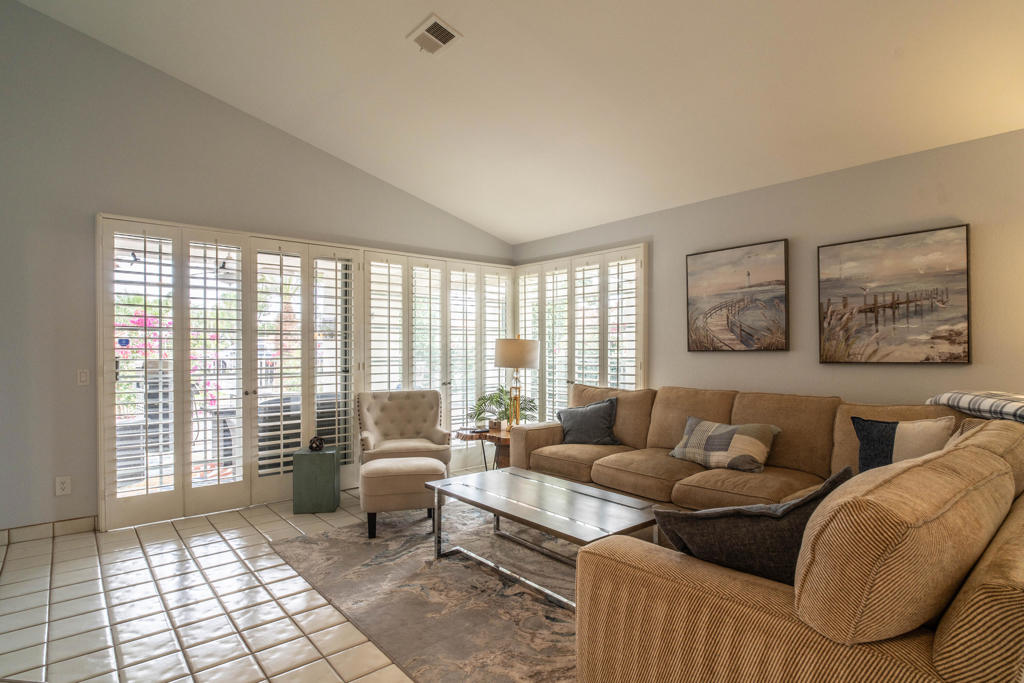 Welcome to this beautifully maintained, turnkey 3-bedroom, 2-bath home in the highly desirable Desert Breezes community, just minutes from the Indian Wells Tennis Garden. This inviting residence features plantation shutters throughout, a warm and welcoming living room with a fireplace. Recently painted and new carpets in all bedrooms.The spacious primary suite offers comfort and privacy, while the additional bedrooms provide ample space for family and guests. Step outside to a covered patio–perfect for relaxing or entertaining in true desert style.Enjoy resort-style living with Desert Breezes’ exceptional amenities, including multiple pools, tennis courts, a clubhouse, fitness center, and picnic areas. The HOA also covers landscaping and trash services, adding to the ease of ownership.This is a fantastic opportunity to own a move-in-ready home in a prime Palm Desert location!Solar lease at $346 a month