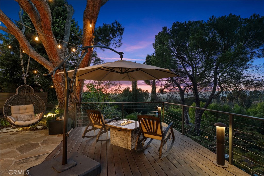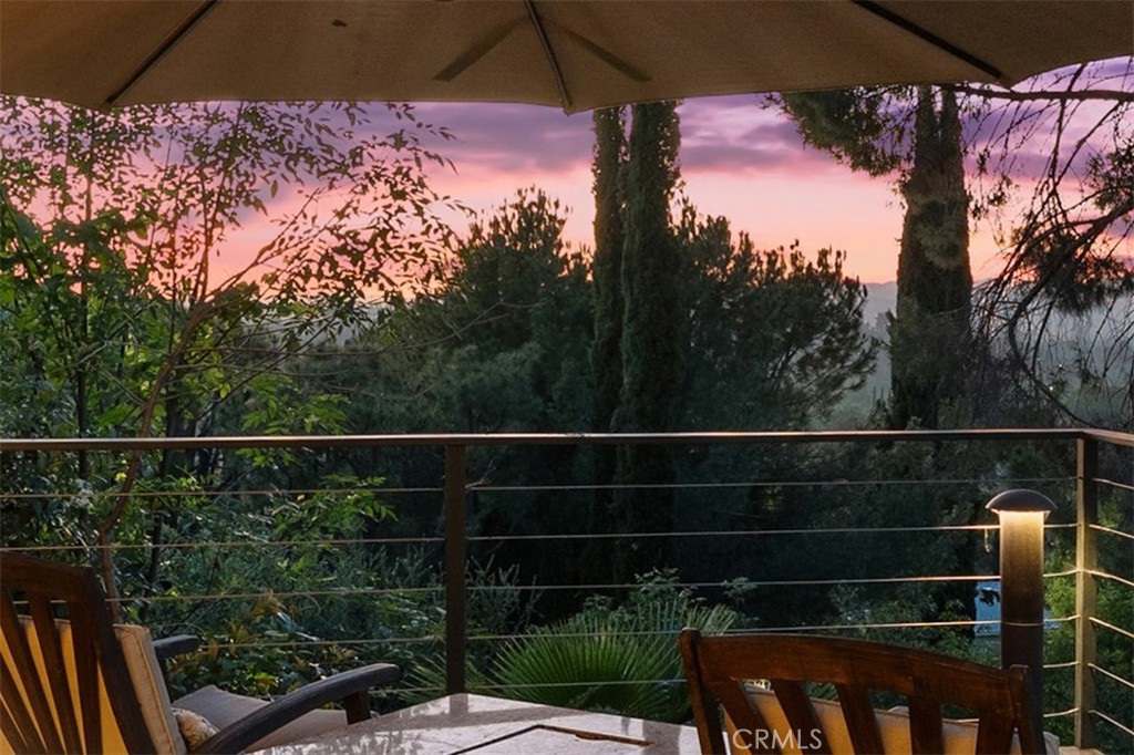 This absolutely stunning 4 bedroom, 3 bath, gated home has views of Warner Center and truly leaves nothing to be desired. A stone driveway and winding path lead to a custom glass front door, opening into a beautifully renovated single story home that seamlessly blends elegance and comfort. The dramatic two-story living room features an artistic spiral staircase leading to a loft, creating a striking architectural focal point. The gourmet kitchen, renovated in 2025, is a chef’s dream, showcasing top-of-the-line Thermador appliances, sleek porcelain countertops, and an oversized center island with a breakfast bar. Expansive corner windows frame breathtaking views and effortlessly bring the outdoors inside. The kitchen opens to a spacious family room, warmed by a cozy fireplace—perfect for everyday living and entertaining. Wide-plank wood flooring and travertine flow throughout the home. Double doors welcome you into the serene primary suite, complete with a generously sized, custom-built closet. The spa-inspired primary bathroom, renovated and gorgeous, features quartz countertops, dual sinks, and a luxurious steam shower with dual shower heads. This home boasts numerous upgrades, including owner-paid in full solar with a battery backup, updated pool equipment and lighting, electrical panel, intercom and cameras, a newer 2026 roof, and more. The incredible covered outdoor kitchen completed in 2025, offers heating and a ceiling fan, allowing for year-round enjoyment. Private and serene, the grounds are nothing short of magical, day and night. Watch breathtaking sunsets, gather around a fire pit with built-in seating, take a refreshing dip in the Pebble Tech pool, or unwind in the tranquil spa. As you wander this very private property, you’ll discover something special in every corner. Mature, arboretum-like landscaping reminiscent of the LA Arboretum creates a truly unforgettable setting. The two-car finished garage offers high end stainless steel cabinets, a high performance epoxy floor and direct access into this phenomenal home. This property is close to Warner Center, The Village, Corbin Canyon Trailhead with miles of hiking trails and is part of the Bon Vivant Community and has access to Tennis Courts, a community pool and clubhouse with incredible views of the San Fernando Valley!