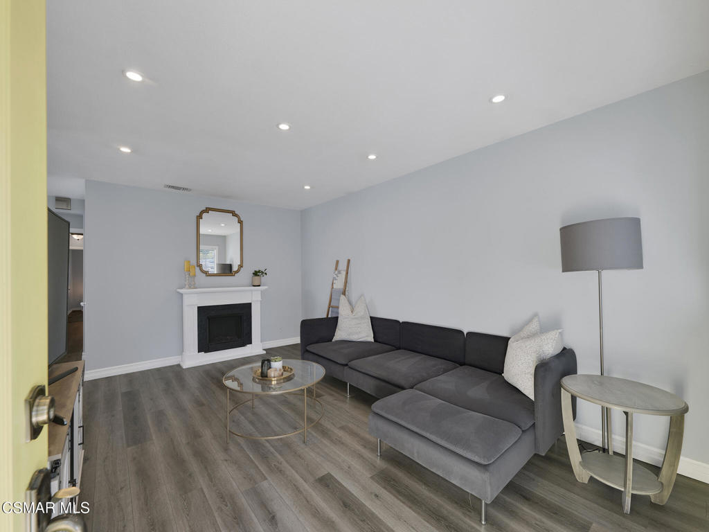 Beautiful updated single-story three bedroom, two bathroom home nestled in the heart of Thousand Oaks. This light filled home features vinyl wood plank-style flooring, recessed lighting, a neutral color palette and a faux fireplace with mantle – all contributing to an airy, charming and calming vibe. The thoughtfully designed kitchen offers white quartz countertops, soft-close cabinetry, stainless steel appliances, and a modern backsplash. Additional highlights include renovated bathrooms, dual-pane windows, central A/C, newer roof and indoor laundry. The private entertainer-friendly backyard includes mature cypress trees for privacy, spa hook-ups, and outdoor cafe string lighting. Enjoy access to shopping, dining, freeways, and nearby hiking and biking trails. This exceptional home is the ideal starter home for a buyer looking to get into a home NOT a project, it is turn-key and seamlessly blends comfort and convenience – come check it out!
