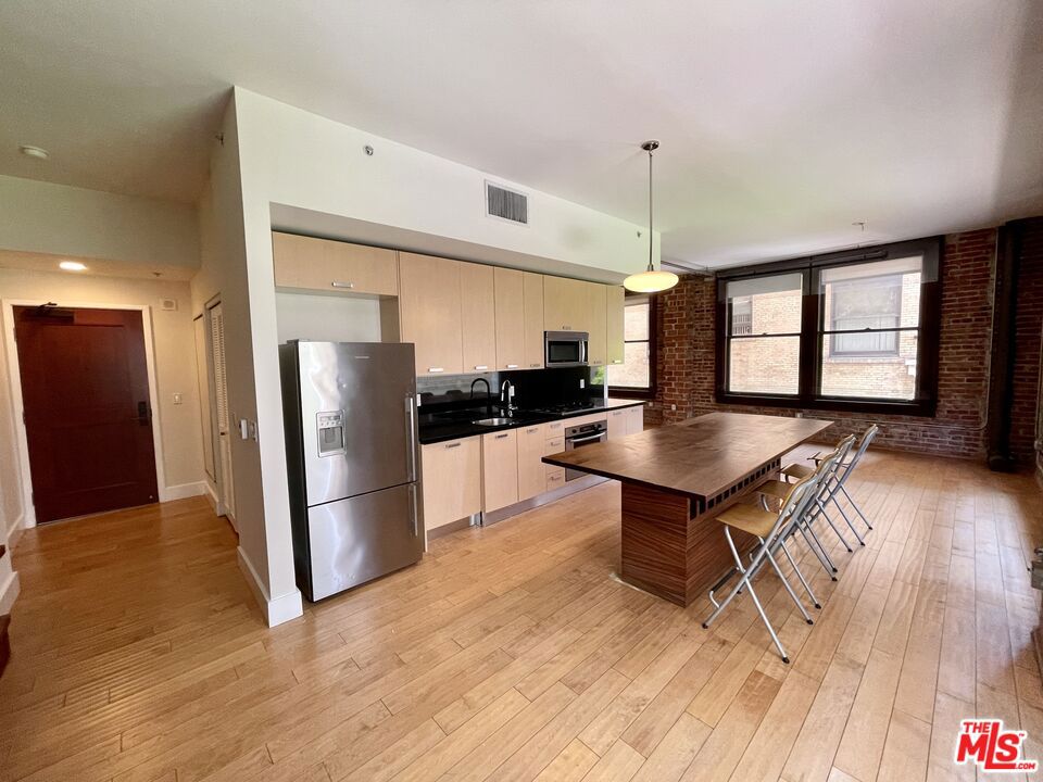 Experience authentic Downtown living in this stunning corner Live/Work loft at the iconic Rowan Lofts. This beautifully restored historic residence features a desirable “L”-shaped layout that offers incredible flexibility for furniture placement, entertaining, or creating distinct living and work zones. Expansive industrial windows flood the space with natural light, highlighting the soaring ceilings and exposed brick walls that add warmth, charm, and architectural character. The thoughtfully upgraded interior includes a custom kitchen island perfect for hosting, built-in shelving for style and function, and a spacious custom walk-in closet designed for modern living. Located on vibrant Spring Street, you’re just steps from some of DTLA’s best restaurants, cafes, and boutiques. Residents enjoy premium amenities including a 24-hour doorman, barbecue area, and relaxing hot/cold spa and residents lounge. Parking available behind the building for a fee.