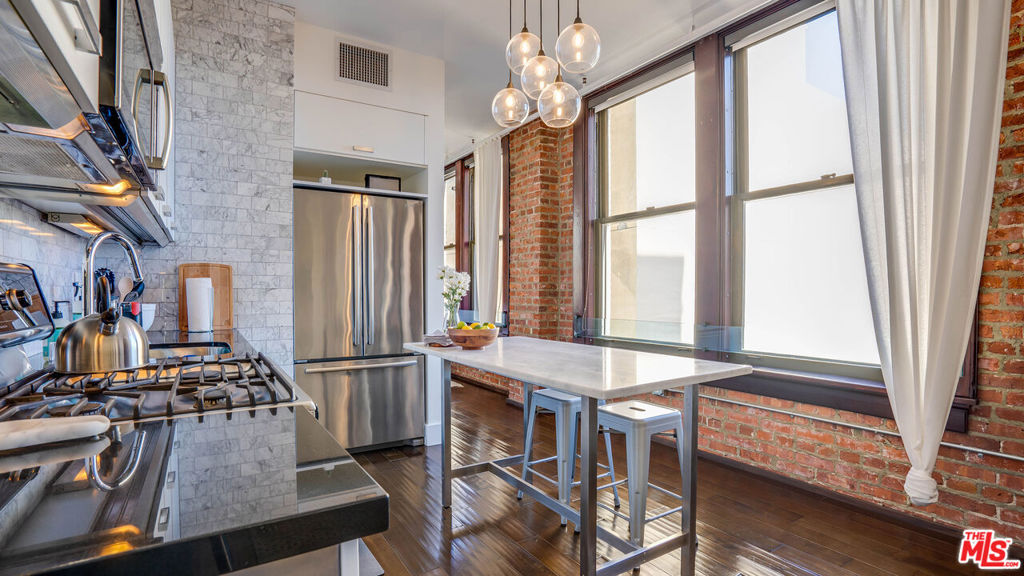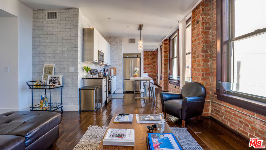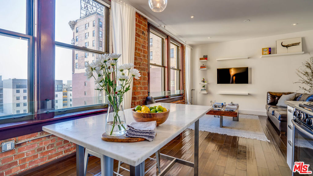 Gorgeous, NYC-style 1 bedroom LIVE/WORK loft at the historic Rowan Building. The well-maintained loft features an entire wall of east-facing windows framed by charming brick walls that bring in tons of natural light. Hardwood floors add to the vintage charm while a modernized kitchen and bath make it ideal for the city dweller. The loft boasts 10ft tall ceilings, and an open living/kitchen/dining layout ideal for entertaining, complete with Italian Scavolini cabinetry, stainless steel appliances, gas stove, dishwasher, oven, fridge, and microwave. The bedroom is nicely separated, and features a spacious closet and ensuite bath. There’s also an in-unit washer/dryer inside a separate closet. Amenities include 24/7 front desk security and reception desk that can accept and hold deliveries, well-maintained outdoor deck w/ hot and cold plunge pools, resident lounge, BBQ with outdoor dining/lounge area, extra basement storage options. Within a few short blocks of Grand Central Market, Metro, Arts District, Little Tokyo, Whole Foods, The Broad, MOCA, Grand Park, weekly Farmer’s Market, tons of coffee shops & dining hot spots. Does not include parking. Rent includes water, trash, gas.