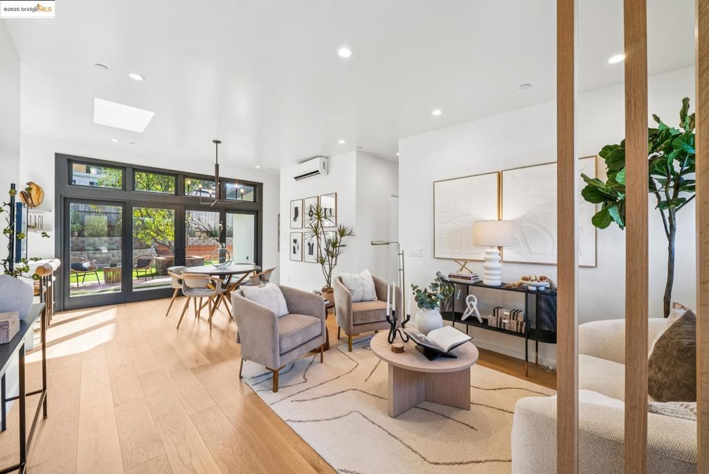 Still Available! Stunning new construction home with countless thoughtful details and spectacular modern design. High ceilings, skylights, beautiful light, white oak floors, artful tile choices, custom woodwork throughout, including kitchen and bathroom cabinetry, expansive backyard with redwood decking and easy-care turf, mature trees, built-in seating and terraced planter beds. The primary suite features a NanaWall door that opens onto the yard and deck. Attached garage (+207sf) with internal access and single level living make this a perfect home for all ages. Energy efficient features include mini split AC/heat, tankless water heater, LED lighting, dual pane windows, closed-cell ceiling insulation, TPO 30 year cool roof, fully insulated walls, 200 amp electrical with new meter, Smart Home system, fire sprinkler system and water-saving plumbing fixtures. This is a dream home presented by master builder Anderson Moraes, known for high quality work built for generations of enjoyment. Convenient El Sobrante location close to schools, trails, shopping and transportation routes.