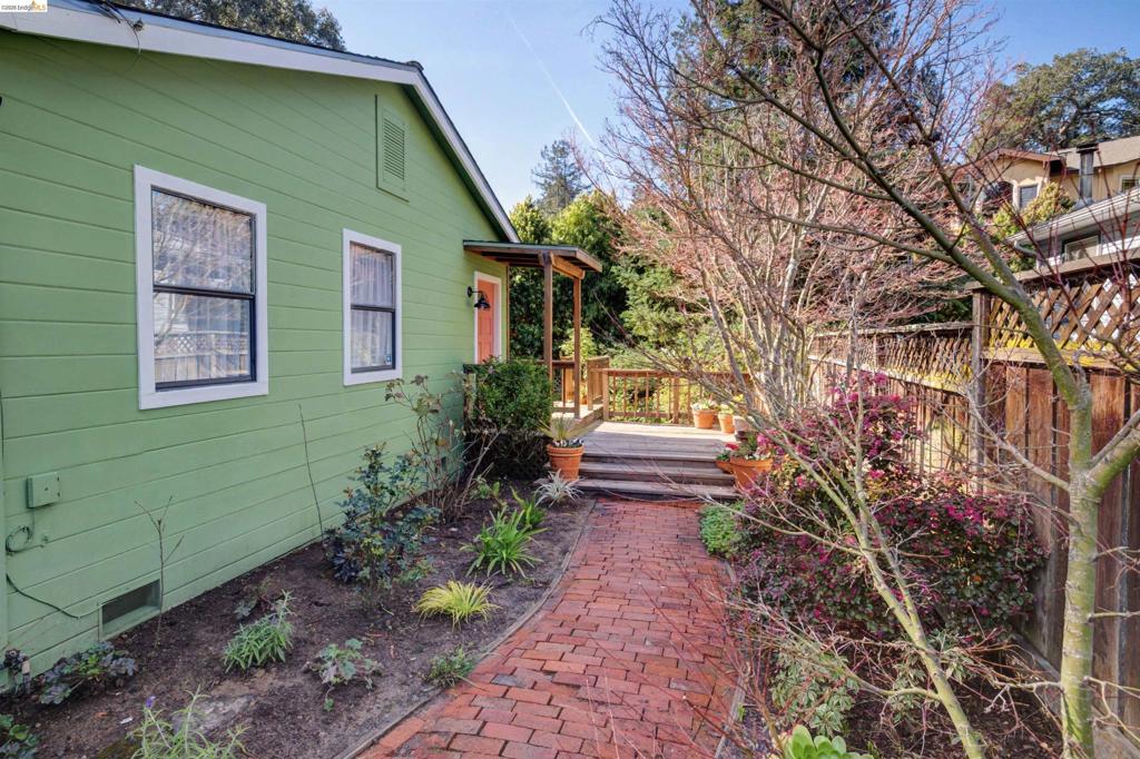 Perched on a large level lot in wonderful Redwood/Leona Heights, this darling magical bungalow delivers two bright bedrooms, a refreshed bath, and a flexible BONUS OFFICE/RETREAT—like a woodland escape yet still connected. A private garden gate opens to a red brick path, sunny front porch, and deck made for morning coffee as the sun streams down. Inside, warm hardwood floors and living-to-dining-to-kitchen layout create an open airy vibe. Many windows and the large slider let in light and flow to an expansive deck—your HQ for al fresco dinners and twinkle-light evenings. The kitchen offers generous counters and cupboards for farmers’ market finds. A large walk-in pantry space keeps things organized. Outside, a fully fenced yard invites veggie beds, herbs, and flowers and maybe an ADU! Outdoor living shines on two levels: an upper deck for golden-hour lounging and below, a majestic redwood casting cool summer shade. DOWNSTAIRS, enjoy a full laundry room, BONUS/OFFICE/GUEST ROOM, and extra storage/workshop space. All this and you ARE in Redwood Heights—one of Oakland’s most sought-after and community-oriented neighborhoods: nearby trails open to miles of scenic adventure, fab parks, shopping, restaurants, easy commuter access and Redwood Heights Elem (9/10 on greatschools.org)!
