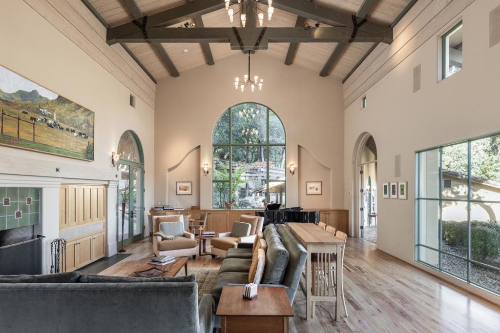 Centrally located in the heart of the Santa Lucia Preserve, this California Spanish Colonial style home embraces clean, contemporary lines with traditional elements like arched doorways and windows, exposed beams and trusses, period-inspired tilework, deep stucco walls and expansive indoor-outdoor living. The house unfolds in a tiered layout, and a grand gallery seamlessly connects the three ensuite bedrooms and library on the West end of the home to the great room and kitchen on the East end, designed to take advantage of the morning sun. A loft above the great room and an office tower are thoughtfully incorporated into the living spaces. A detached 500 sq. ft. workshop is an additional bonus space. Sited against a gently sloping hillside, the home harmonizes with the natural contours of the surrounding trees and landscape. Sweeping views expand beyond the Equestrian Center to the rolling hills of the Santa Lucia Preserve. Within walking distance is the Hacienda, the gym and pool facilities at The Ranch Club and the community hub, The Nest. This timeless residence reflects a thoughtful dialogue between architecture, light, and landscape.