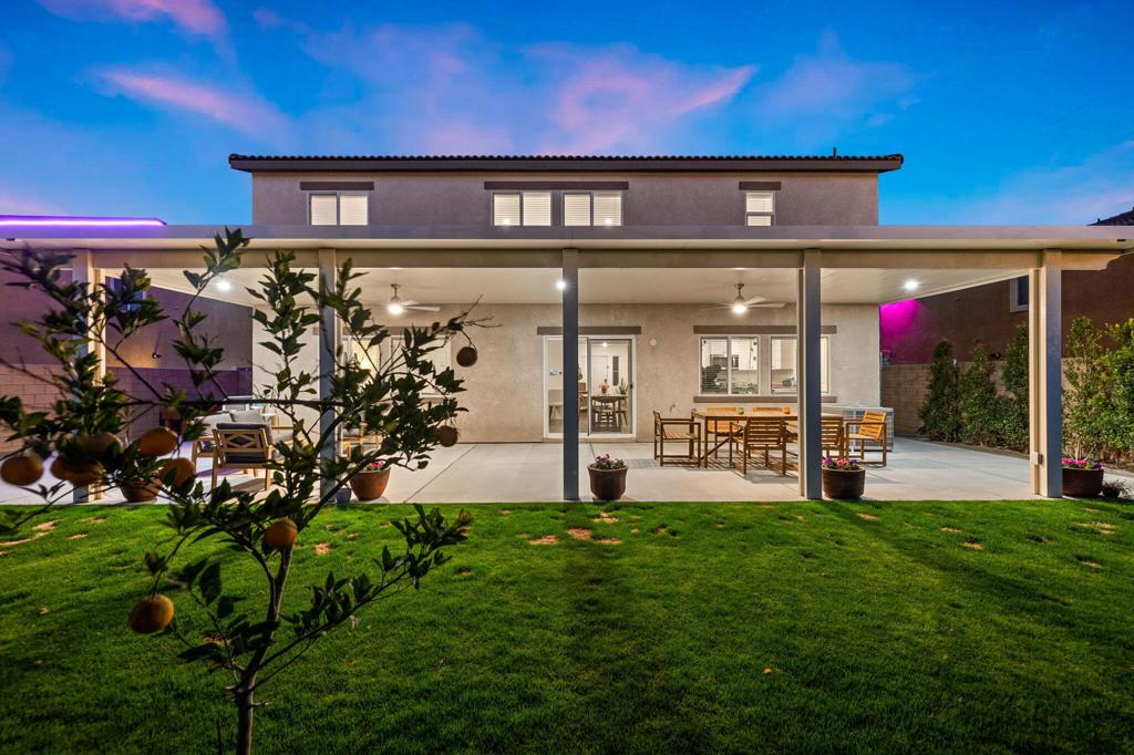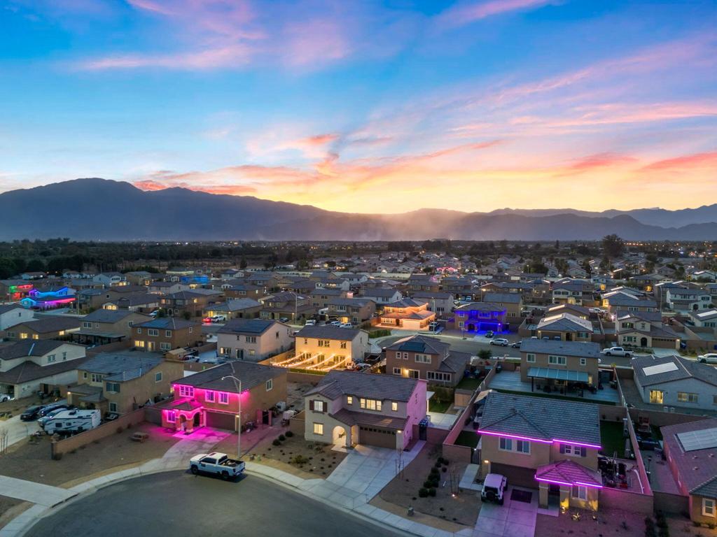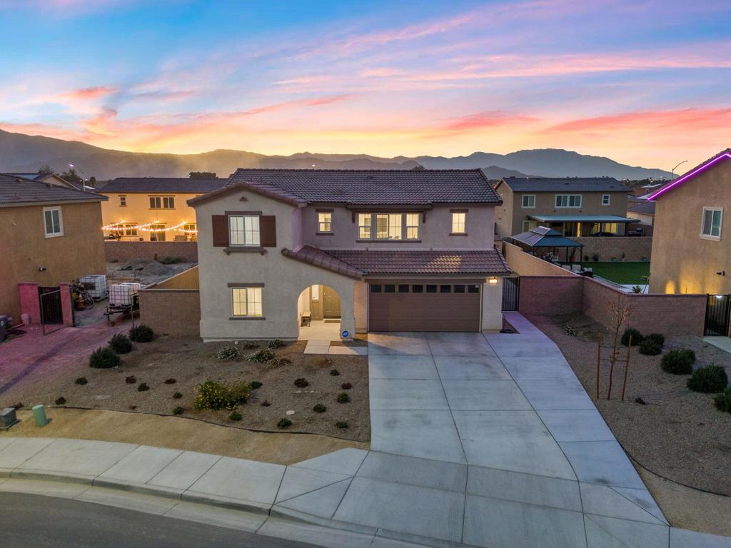 Nestled in the prestigious Mariposa Pointe community, this stunning 2,239 sq. ft. home seamlessly blends modern elegance with thoughtful design. With paid solar and high-end amenities, it offers ultimate comfort and convenience. The expanded driveway leads to a charming covered porch, welcoming you into a meticulously maintained home. Inside, an expansive Great Room is bathed in natural light, enhancing the open-concept design. A first-floor guest bedroom provides privacy and accessibility for visitors. The chef’s kitchen boasts stylish white cabinetry, granite countertops, a spacious island, and premium stainless-steel appliances, flowing into the dining area–perfect for entertaining. Upstairs, an oversized loft serves as an ideal space for movie nights, studying, or unwinding. The luxurious Primary Suite offers a spa-inspired bath with an oversized shower, dual-sink vanity, and walk-in closet. Additional spacious bedrooms and a dedicated laundry room add functionality. Outside, enjoy an expansive backyard with a new patio, lush grass, and growing hedges for privacy, plus A dedicated dog area ensures that even your four-legged family members have their own space.. Smart home features include America’s Smart Home Technology, LED recessed lighting, and a tankless water heater. Short-term rental-friendly and minutes from Coachella and Stagecoach, this home is priced to sell. Schedule your private tour today!