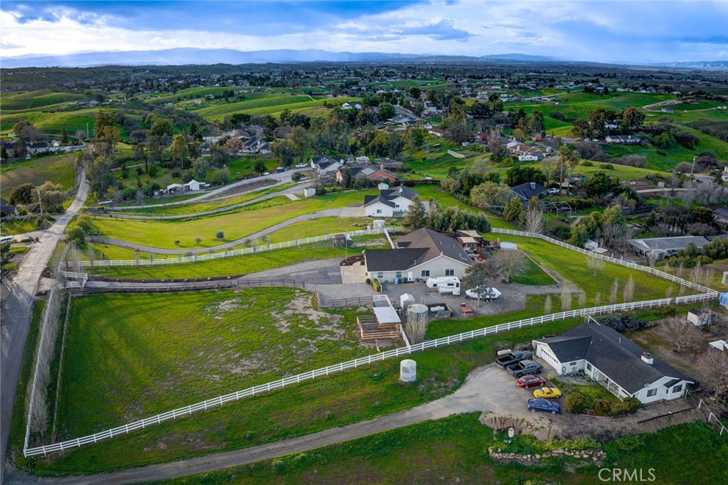 Built in 2005, this beautifully maintained 4BD/2BA home sits on 2 usable, manicured acres with a dedicated pasture in the rolling hills of Paso Robles, offering sweeping 360-degree views of vineyards, countryside, and stunning sunsets. An electric gate opens to a long-paved driveway and fully fenced grounds featuring white vinyl three-rail fencing with additional snake fencing — ideal for animals and country living. The sun-filled interior showcases high 9-foot ceilings and expansive windows that invite abundant natural light throughout. The kitchen features granite countertops, stainless steel appliances, and generous storage, along with indoor laundry and an oversized 3-car garage. The living room fireplace creates a warm focal point, while the primary suite offers a double-sided fireplace shared with the en-suite bath, complete with a sunken soaking tub and spacious shower. A bonus room provides additional flexible living space. Outdoor amenities include a full outdoor kitchen, above-ground pool, producing olive trees, horse stalls, chicken coop, a thoughtfully built treehouse, owned soft water and reverse osmosis systems, plus a full RV hookup with 50 AMP service and clean-out. The pasture and fenced acreage make this property perfectly suited for horses, livestock, or simply enjoying wide-open space. Refined wine country living with privacy, usability, and breathtaking vineyard views. Too many amenities to list — this incredible property must be seen to be fully appreciated. All information deemed reliable but not guaranteed. Buyer to verify.