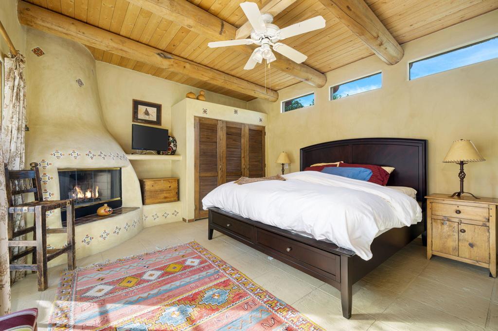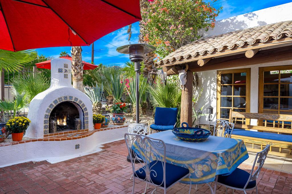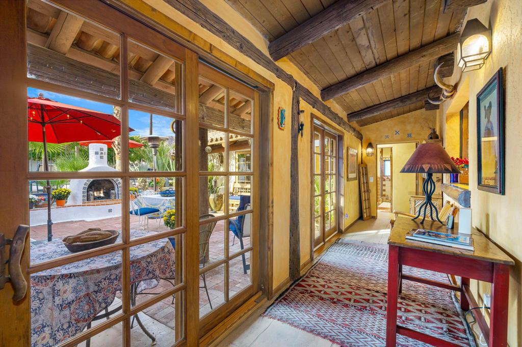 Single Family Pool Home with Detached Casita on a Corner, Double Lot. Turnkey Furnished. Discover a Unique Desert retreat set dramatically against the backdrop of the Santa Rosa Mountains. Featured in Palm Springs Life Magazine, this original Santa Fe-style home, designed by renowned architect Charles Martin in 1978, sits proudly on a Corner Double Lot & hidden behind white walls for maximum privacy. Step into the private courtyard that leads to a home brimming with character & history. The open floor plan welcomes you with soaring wood ceilings, accentuated by massive pole beams, while French doors invite you to explore the outdoor spaces. A seamless indoor-outdoor flow is perfect for entertaining, leading to an expansive courtyard featuring a large pool, spa, outdoor fireplace, & kitchen, all framed by magnificent mountain views. This 4 bedroom, 4 bath gem boasts a spacious primary suite w/ cozy fireplace and Detached Casita. Casita is a comfortable retreat with its own living area, kitchenette and one-car garage. George Arnold’s artistic touch is felt throughout the home, from handcrafted furniture to unique, detailed finishes. This is not just a home; it’s a work of art, lovingly maintained & full of history. Experience the unmatched beauty & character of this rare Santa Fe masterpiece, with its perfect blend of rich character & modern amenities. Don’t miss your chance to own a piece of La Quinta’s rich heritage.