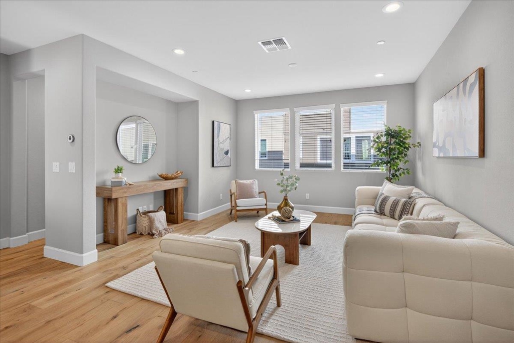 Absolutely stunning 3bdrm/3.5ba townhome offering 1,719 sq ft of refined living in a premier interior location within the highly sought-after Boulevard Community. Each bedroom features its own private en-suite bath, including a full bedroom and bathroom on the main level—ideal for guests, multi-generational living, or a private home office. This residence showcases upgraded hardwood floors, plush luxury carpet, designer bathrooms, and a beautiful chef’s kitchen with quartz countertops, a meal prep island, and elegant marble tile backsplash. A covered balcony off the kitchen overlooks the serene greenbelt, perfect for everyday relaxation or entertaining. The front entrance opens directly to the greenbelt, creating a park-like extension of your living space. Right next to the greenbelt is a community outdoor gathering area, “The Kitchen,” featuring 2 gas BBQs, bar seating, and dining areas—ideal for celebrations and social gatherings. Additional highlights include ample guest parking and an attached two-car side-by-side garage. Enjoy the resort-style amenities just steps away, including a pool, two fitness centers, clubhouse, meeting rooms, and the expansive 31-acre Don Biddle Park. Prime location near top schools, shopping, dining, and walk to BART. THIS IS A MUST SEE!