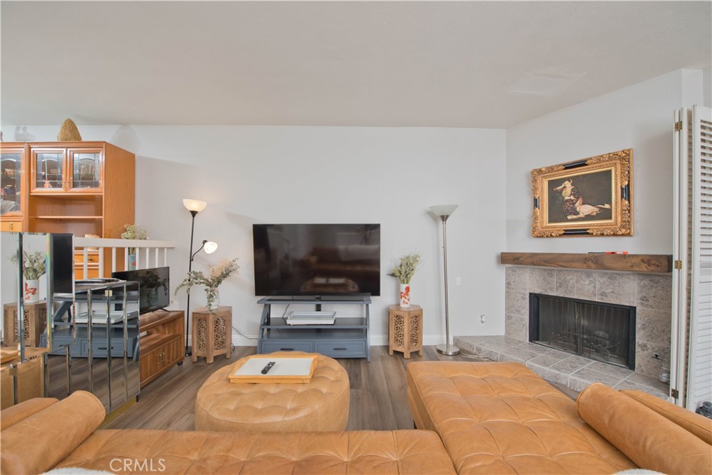 Welcome to this beautifully upgraded 3-bedroom + bonus room, 2.5-bath townhome in the highly desirable Warner Village community. Designed with an open-concept layout, this home is truly an entertainer’s dream. The inviting family room features a cozy fireplace and a private balcony surrounded by lush greenery, creating the perfect indoor-outdoor flow. Gorgeous wood flooring spans the entire first level, seamlessly connecting the living room, dining area, breakfast nook, and kitchen. The stunning kitchen is highlighted by elegant quartz countertops, a large center island ideal for gathering and meal prep, custom cabinetry offering abundant storage, and sleek stainless steel appliances that complete the space in style. Upstairs, the spacious primary suite boasts vaulted ceilings, a private balcony, two closets including a walk-in, and a beautifully upgraded en-suite bath with a glass-enclosed shower and modern vanity. Two additional generously sized bedrooms with ample closet space and a nearby full bathroom are conveniently located just off the staircase.The attached two-car garage provides direct access to an oversized bonus room—perfect for a home office, gym, playroom, or media space—and includes a washer and dryer for added convenience. Enjoy resort-style living in Warner Village with amenities including two pools, a tennis court, walking paths, tranquil creeks and ponds, and a community center. The HOA covers water, internet, basic cable, and earthquake insurance. Ideally located near shopping, dining, and entertainment, this exceptional home offers the perfect blend of comfort, style, and functionality.