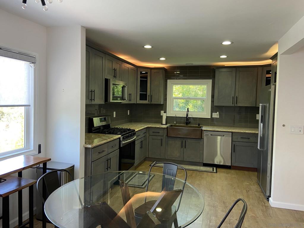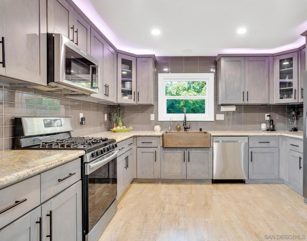 This “must see” home was fully renovated a few years ago and it is located on a quiet cul-de-sac. It is surrounded by breathtaking natural beauty and is located in a prestigious neighborhood, which is also zoned for a top-performing school district. This property also presents a great opportunity as a rental income property with the numerous bedrooms and being close to San Diego State University. This charming curb appeal is very welcoming plus the backyard allows inspiring canyon views, creating an inviting space to unwind or entertain. The gourmet kitchen is a great quality of this home. It has top-of-the-line stainless steel appliances, custom cabinetry, and granite countertops. The large primary bedroom suite is a true retreat, and it is located on the main entry floor. Wake up to views of the surrounding canyon and indulge in the en-suite bathroom, large walk-in shower, and dual vanity sinks. There are several storage rooms and additional rooms/spaces that can be used as a gym, office, art room or even an extra sleeping space. The home also has a two car garage.
