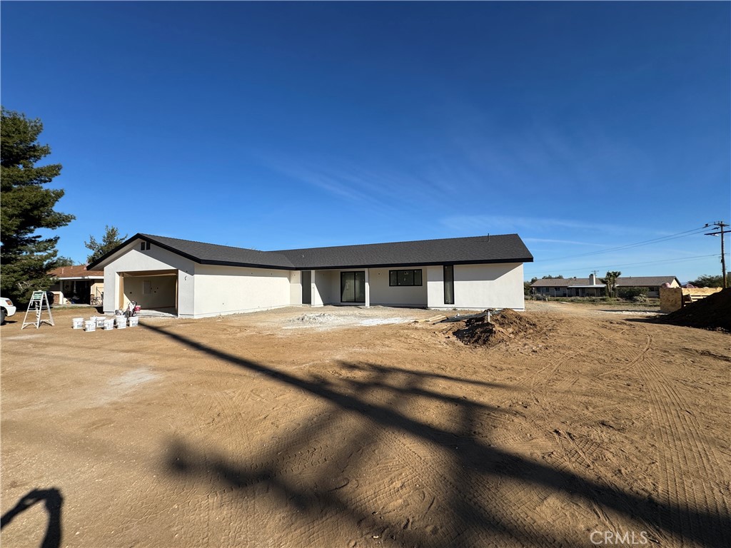 A first-of-its-kind new home by Goodpaster Construction of Yucca Valley. Get your checklist ready—this NEW custom-built home is loaded with exceptional features. Located in the highly sought-after Sky Harbor neighborhood, this home offers more than 2,150 square feet of thoughtfully designed living space with three bedrooms and two and a half bathrooms. Step into a massive great room that flows seamlessly into the dining area and kitchen, creating the perfect open-concept living space. The great room features an electric fireplace and abundant windows that fill the home with natural light, creating a bright and airy atmosphere. The kitchen is a cook’s dream, featuring name-brand appliances, a large island with plenty of seating, and ample space to gather while meals are prepared. Just off the kitchen is a butler’s pantry complete with a prep area and sink—perfect for entertaining and additional storage. The home features a split floor plan, with two bedrooms on the east side and the primary suite on the west for added privacy. Each bedroom includes a large sliding door that brings in natural light and offers convenient outdoor access. The spacious primary suite includes an oversized walk-in closet. The primary bathroom creates a spa-like environment with features including dual sinks, a walk-in shower with dual shower heads, a free-standing tub, and a smart toilet. Additional features include a separate indoor laundry room and an oversized two-car garage designed as a versatile flex space. The fully insulated and finished garage includes a half bath, space for an office or workout area, and its own mini-split system for climate control. The home is pre-wired for surround sound and security cameras. All of this sits on a ¾-acre lot in one of Yucca Valley’s most desirable neighborhoods. Bring your checklist and come see how many boxes this incredible home will check for you.