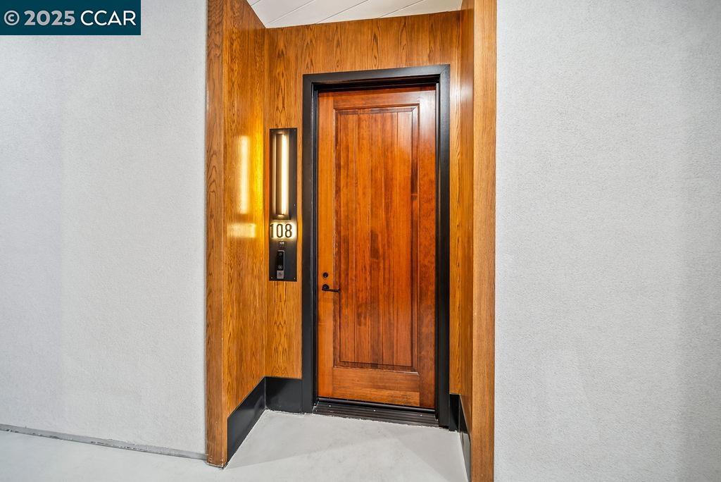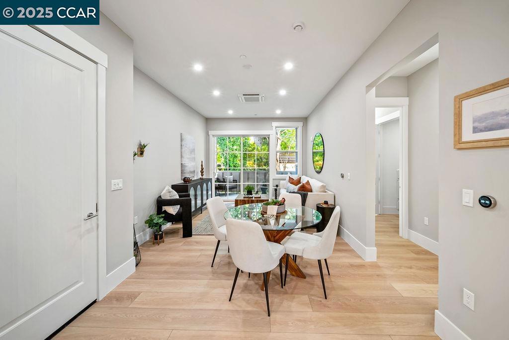 600 Hartz, where classic beauty & modern elegance coalesce, nestled in the heart of downtown Danville. This new boutique building boasts a collection of 36 luxury residences in sixteen different floor plans with 1, 2, or 3 bedrooms, each designed around a lushly landscaped courtyard, offering a tranquil escape for residents. Given its prominent location, the architectural design of 600 Hartz was crafted to complement the historic charm and character of Danville. (visit the website @ 600Hartz.com). Residence #108 is a stunning, brand-new condominium that seamlessly blends timeless classic design with contemporary flair. This single-level, 760 sq. ft. residence offers 1 spacious bedroom including walk in closet, 1 beautifully appointed bathroom, and a large den, with a sleek layout that is an extremely efficient use of space. An exquisitely designed kitchen where style meets functionality. Anchored by a stunning herringbone-patterned backsplash, quartz countertops and stainless-steel appliances. This lower-level home also features a private patio with park views. Step inside to 10-foot ceilings & expansive windows, and an open floor plan. Units are equipped with a nest home thermostat.