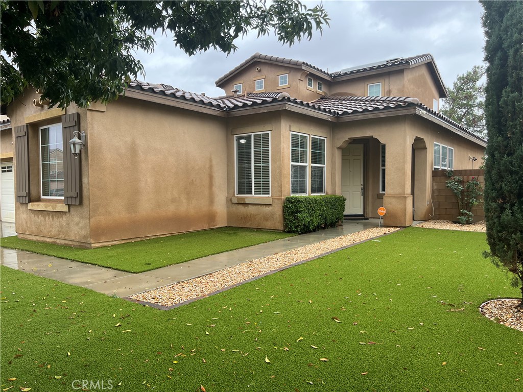 Welcome to this stunning two-story home in the highly desirable West Lancaster neighborhood, offering the perfect combination of style, space, and functionality. Built in 2007, this 4-bedroom, 3-bathroom residence spans approximately 2,568 sq ft and features a thoughtful floor plan designed for modern living. The main-level primary suite provides privacy and convenience, complemented by an additional downstairs bedroom—perfect for guests, a home office, or multigenerational living. The heart of the home is the open-concept kitchen, complete with granite countertops, a large center island, tile flooring, recessed lighting, and abundant cabinetry, which flows seamlessly into the inviting family room featuring a cozy fireplace and custom built-ins. This space is ideal for entertaining or relaxing with family. Upstairs, two generously sized bedrooms share a Jack-and-Jill bathroom, offering a functional layout for children or shared spaces. Additional highlights include a spacious indoor laundry room, central heating and air conditioning, 2-car attached garage, a durable tile roof and synthetic/artificial grass in the front and backyard Set on an approximately 8,276 sq ft lot, the property offers a private block-walled backyard—perfect for outdoor gatherings, play, or future landscaping projects. Solar panels provide energy efficiency and long-term savings (lease to be assumed). Conveniently located near schools, shopping, parks, and major commuter routes, this home combines comfort, convenience, and lifestyle. Move-in ready and ideal for families seeking a spacious, functional, and stylish home in a sought-after neighborhood. All information is deemed reliable but should be independently verified by the buyer.