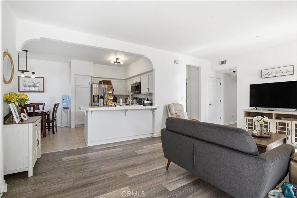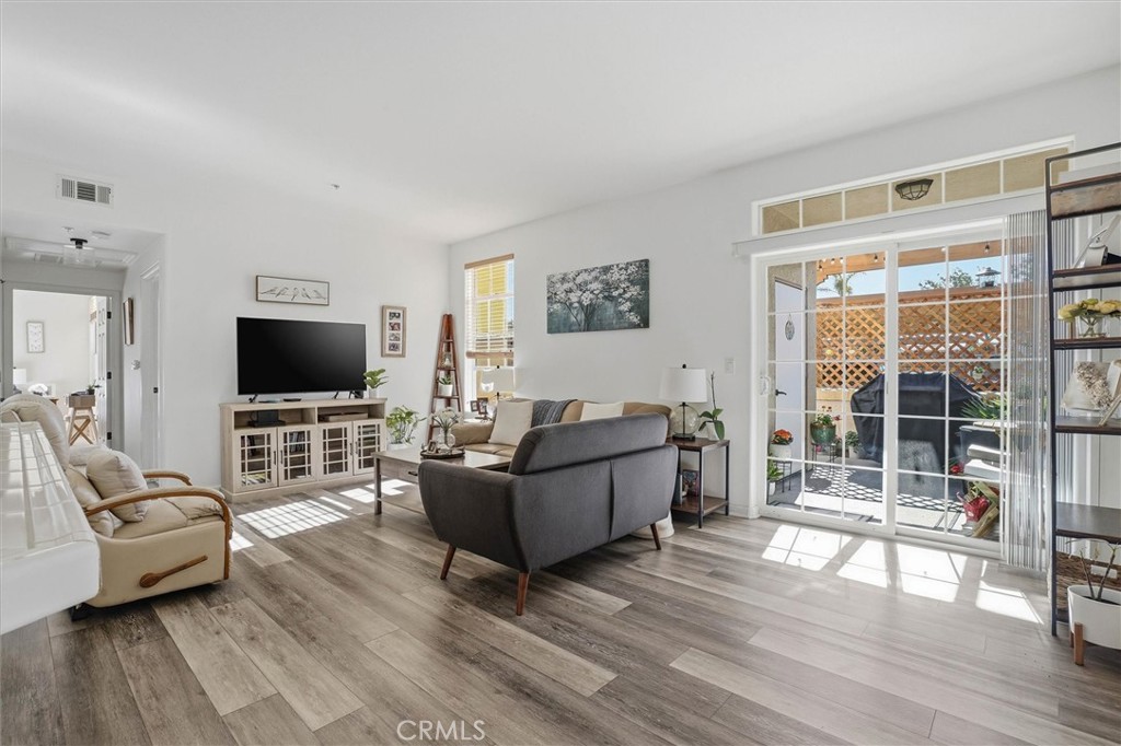Bright and private lower-level corner condo in Mission Creek Village, a well-maintained community built in 2005, known for its low HOA dues and pride of ownership. Located at the back of the complex, this single-story, no-stairs home offers comfort, privacy, and an easy lifestyle at a compelling price. The interior is open and modern with high ceilings, dual pane windows, abundant natural light, south-facing windows and patio, and dual-pane windows throughout. On-trend vinyl flooring, neutral paint colors, newer light fixtures and appliances, and a brand-new water heater (Jan 2026) make the home truly move-in ready. The thoughtful layout includes indoor laundry, nearby guest parking, and a covered patio with additional storage. Both bedrooms are generously sized with walk-in closets and ceiling fans, both bathrooms offer glass-enclosed tub & shower combinations. Mission Creek Village is a beautifully cared-for community with a pool and clubhouse, centrally located off Santa Maria Way and close to shopping, dining, and everyday amenities. A modern, low-maintenance home you can comfortably enjoy for years to come.