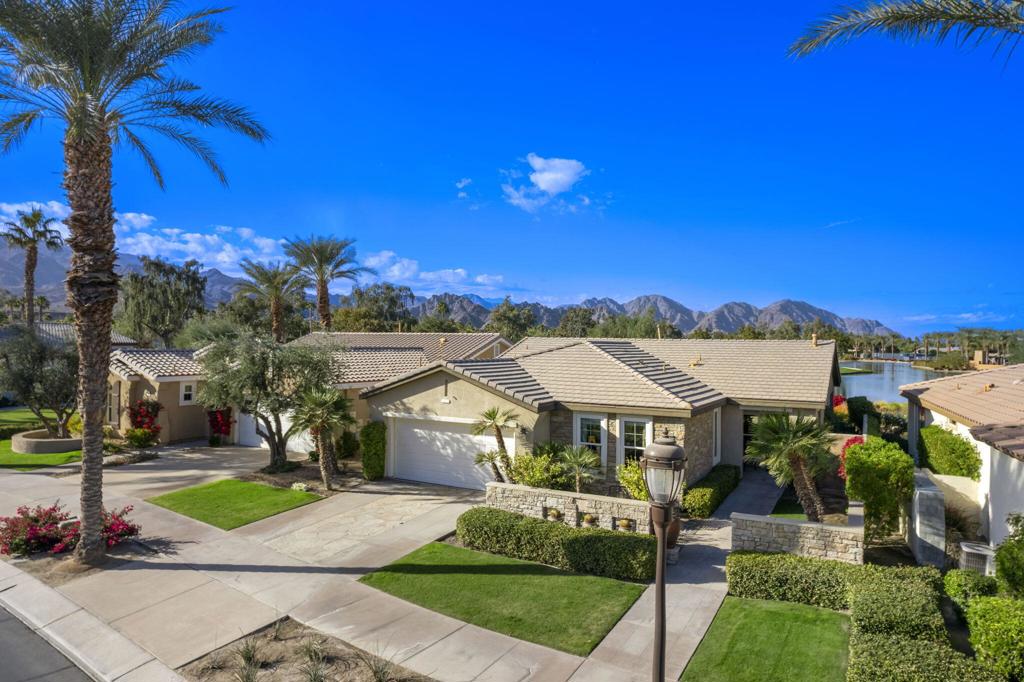 A Legacy home and front row seat to the majestic beauty and invigorating lifestyle of Trilogy at La Quinta! This rare Shea original and richly customized Oasis model 1,553 SF, 2 BR, 2BA home, features the best location and views in all of Trilogy. Located within a short walk of the Santa Rosa Club, and adjacent to the 6th Fairway, the property features spectacular panoramic western views of the 6th hole, lake, and Coral Mountains. This popular Oasis plan was especially crafted and designed by Shea Homes to capture the hearts and minds of new Trilogy buyers, and today, it’s being offered Turnkey furnished. The exterior features the popular Tuscan exterior elevation with a custom Tuscan block wall in the front yard. The extended back front and back patios create additional entertaining space and the private spa boasts a custom water feature. This home is open with high ceilings, tiled floors on point, and a custom built-in entertainment center and China Cabinet. Snuggle up for a night of movie action on the big screen TV, above a beautiful stack stone wall of light golden hues, with a raised hearth linear gas fireplace. The delightful kitchen includes granite slab countertops, custom cabinets and backsplash, double ovens, and stainless steel appliances, a pantry with custom glass door, and additional built-in buffet with room for all your kitchen ware. By day, hang out on the covered patio and watch the golfers as they attempt to land that perfect shot onto the 6th green.