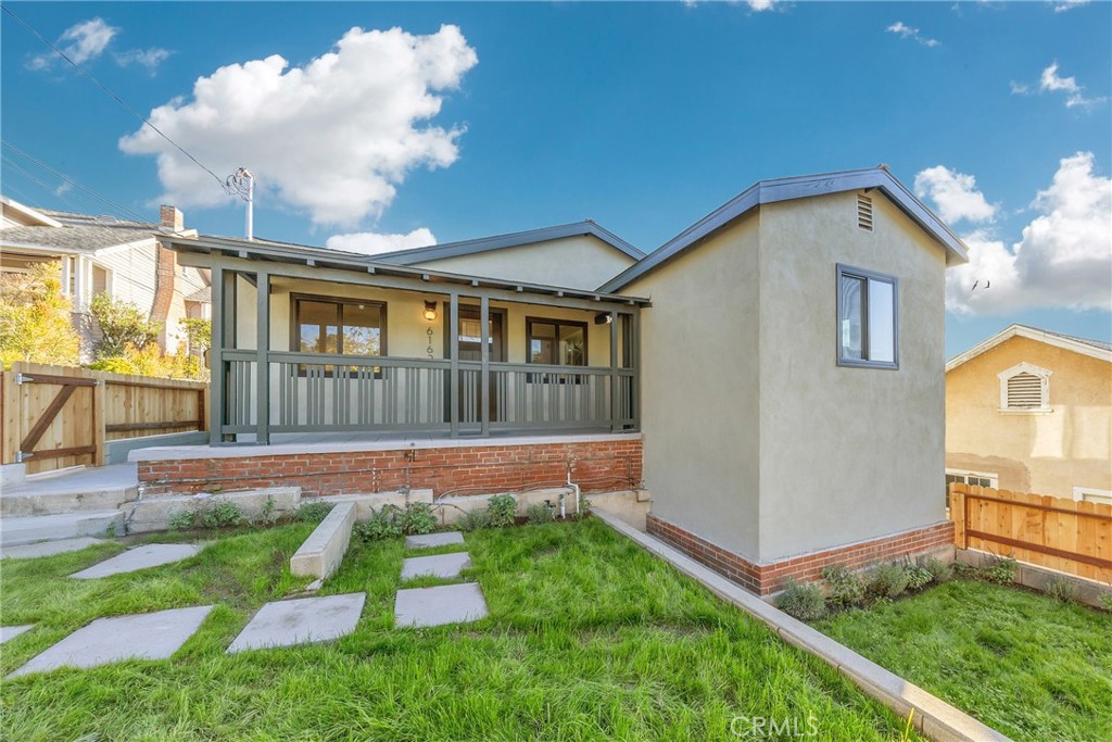 Perched on a quiet hillside street, The Painted Palm House at 6162 Annan Way delivers the rare trifecta: architectural charm, thoughtful renovation, and an ADU- all wrapped in a design-forward aesthetic that feels straight out of a magazine. The 2 bed / 1 bath main residence is filled with natural light and features warm Oak-style flooring, smooth skim-coated walls, and a modern neutral palette. The reimagined kitchen showcases two-tone cabinetry, open shelving, designer brass hardware, and Café appliances, flowing easily into the dining and living areas. Both bedrooms are bright and serene, while the spa-worthy bath offers a skylight, artisan tile, fluted wood vanity, and brushed brass fixtures. Outside, the home shines with new exterior paint, fresh landscaping, updated hardscape, and a newly paved driveway, creating a backyard perfect for morning coffee and golden-hour gatherings. The detached 1-bed/1-bath ADU mirrors the same elevated finishes, making it ideal for guests, rental income, or multi-generational living. A 2-car garage, two additional parking pads, and a separate bonus room offer rare flexibility for a studio, gym, or office. Its signature statement- the custom hand-painted palm mural- gives the property its name and unmistakable SoCal identity, delivering curb appeal that truly stops traffic. Minutes from York Blvd cafés, boutiques, and nature trails, The Painted Palm House is a lifestyle upgrade with built-in versatility- turnkey, design-forward, and move-in ready.