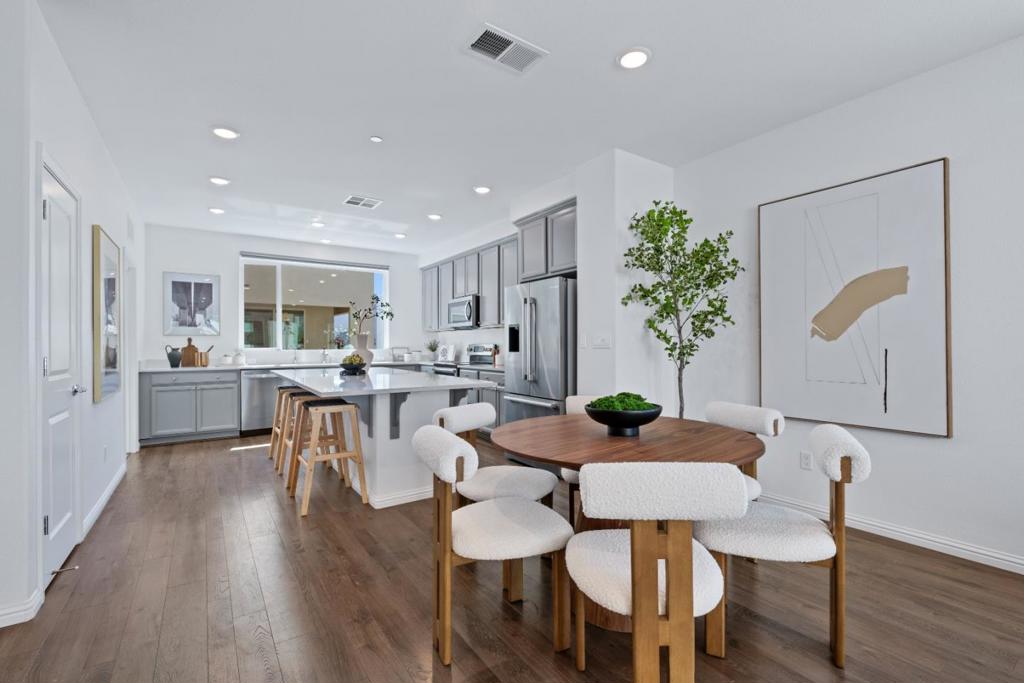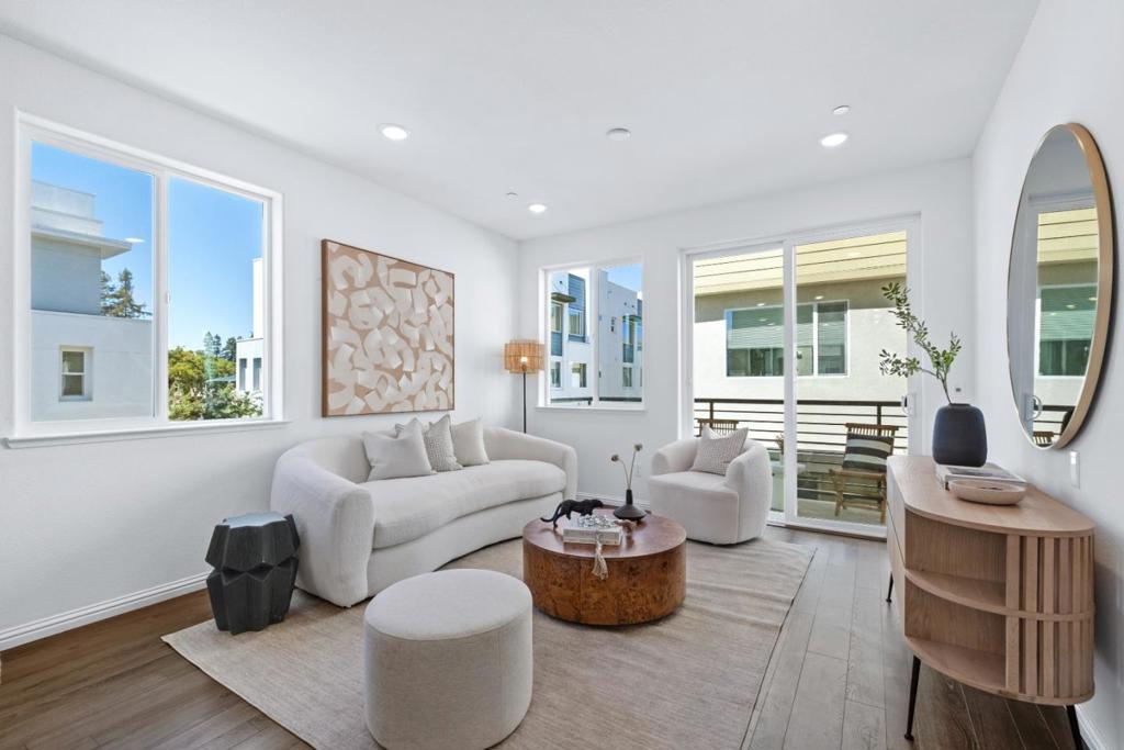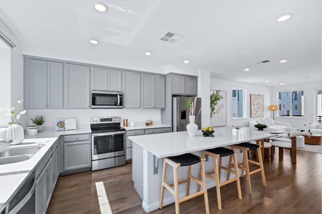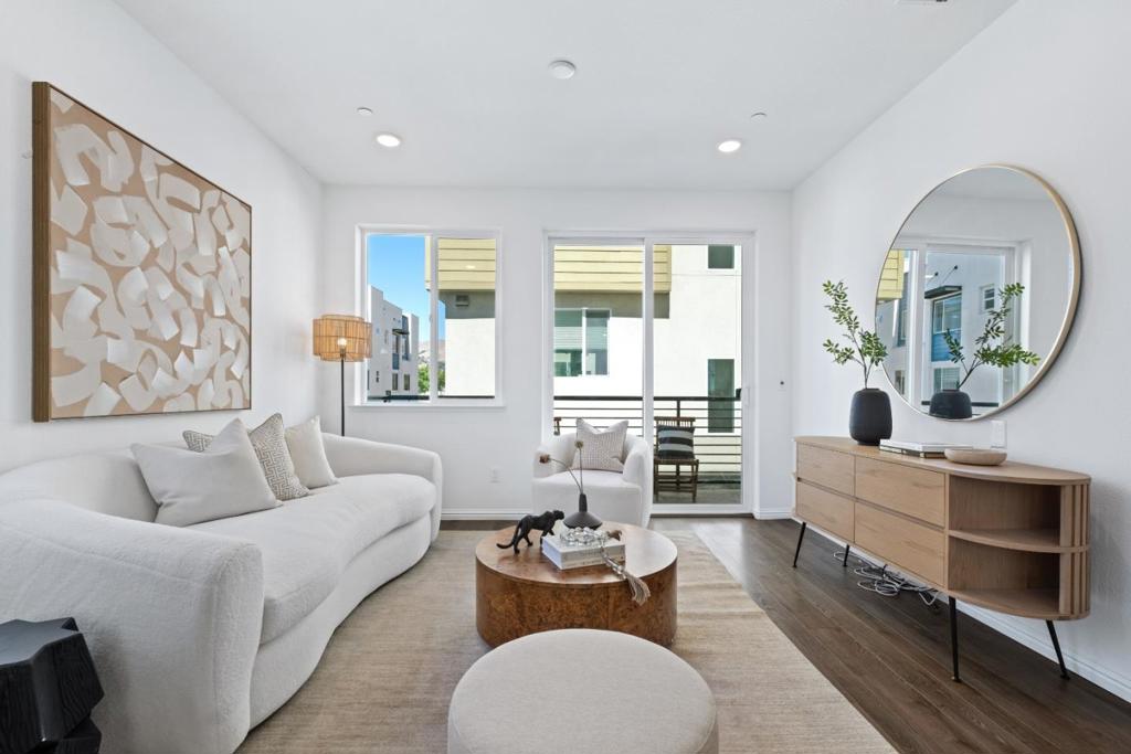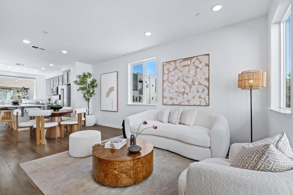 *Get ready to fall in love with this stunning 5+ year new Pulte Home blending fully upgraded modern design, premium finishes, & sunlit open spaces. *North-east facing corner unit with view of the mountains & abundant natural light on all levels. *Ground-level bedroom with en-suite bath & walk-in closet, ideal for guests or office. *Open-concept layout with high ceilings, recessed lighting, & stylish laminate flooring. *Kitchen with large center island, quartz countertops, stainless steel appliances, extensive cabinetry & walk-in pantry. Spacious primary suite with custom walk-in closet and dual-sink vanity. Linen closet, laundry closet, along with three bedrooms, feature custom closets installed less than a year ago. *Enjoy top-tier upgrades including – in-unit laundry, tankless water heater, water softener, 2-car side-by-side garage with EV charging, & owned solar. *Vibrant, community-oriented neighborhood with a city park, dog park, clubhouse, BBQ area, garden, & playground plus nearby private schools within walking distance. *Close to 680/101/87, top grocery stores (Safeway, Target, Sprouts, Costco), fitness centres (Planet fitness, Villa Sports) & other Retail stores. *Walkable distance to VTA Light Rail station & short drive to Berryessa Bart.*Note: Buyer to verify all info.