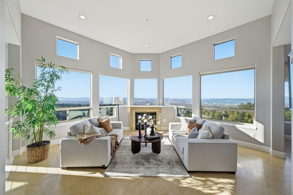 Perched at the end of a quiet level cul-de-sac, views encompassing all 5 bridges, San Francisco, & even the Farallon Islands. Originally envisioned as a high-end Mediterranean estate, the home has been thoughtfully updated to fuse timeless architectural warmth w/crisp contemporary sophistication. The result is a residence that feels both enduring and current—an effortless blend of design, comfort, & innovation. 4+ Bedrooms | 3.5 Baths | Chef’s Kitchen Dramatic entryway sets a grand tone from the moment you arrive. Chef’s kitchen w/Silestone quartz countertops, custom cabs, modern plumbing & lighting fixtures, & stainless appliances designed for entertaining, w/a fluid connection to both formal & informal open living spaces. Appliances include a Sub-Zero refrigerator/freezer, Miele oven & exhaust, & a Lutron remote-controlled shutter system in the kitchen. Lavish primary suite featuring a private sauna, spa-style bath, & unparalleled views stretching to the horizon. Expansive level backyard—ideal for croquet, badminton, gardening, or simply relaxation. Expansive deck clad in Brazil Ipe wood, offering an outdoor living experience. Eco-upgrades: an 8 kW+ solar array paired w/2 Tesla Powerwalls for energy independence. Views, level outdoor spaces, &high-end finishes can all be yours. Views: Downtown, Ridge