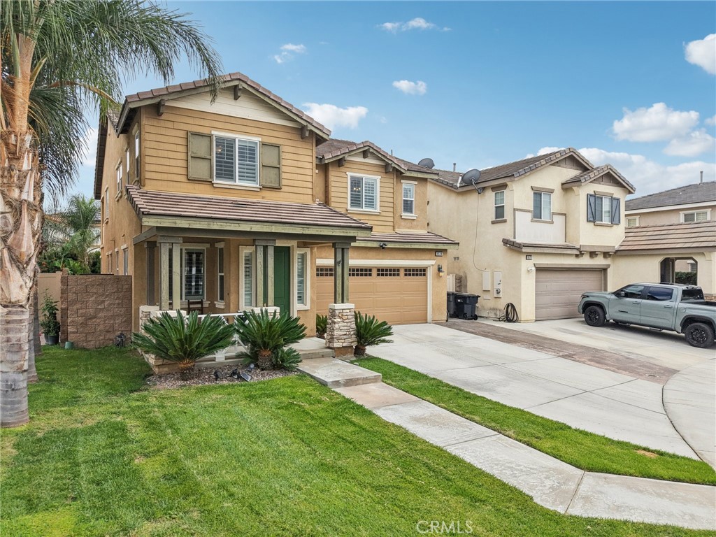 Welcome to your dream home! This beautifully maintained property is situated in a sought-after Eastvale community with low HOA fees. Nestled in a quiet cul-de-sac, this home boasts 4 spacious bedrooms and 3.5 bathrooms, perfect for comfortably. As you step inside, you’ll be greeted by an open floor plan that seamlessly connects the kitchen, family room and dining area-ideal for entertaining and family gatherings. The ample sized kitchen features a cozy nook, perfect for family meals. The Master Bedroom retreat is a true sanctuary, complete with a luxurious bathroom, a walk-in closet, and private balcony to enjoy fresh air. Enjoy the upgraded wood flooring, upgraded baseboards and planation shutters throughout enhancing both style and comfort. Upstairs you’ll find a mini suite bedroom with its own bathroom, along with a convenient laundry room and three well sized bedrooms. Step outside to your beautifully landscaped backyard, featuring a fire pit, patio cover and ceiling fan, stamped concrete-an inviting space for outdoor entertaining and relaxing. Gas line connections in backyard to easily install outside barbeque island. The garage is equipped with proxy seal flooring and ceiling shelfs for plenty of storage, along with a split ac unit for a perfect mancave, workshop, or gym, complemented by a tankless water heater for efficiency. Conveniently located near top rated schools, shopping, and an internation airport, making it ideal for both leisure and commuter needs. Don’t miss this opportunity to make this exceptional property yours before summer! See you in escrow!