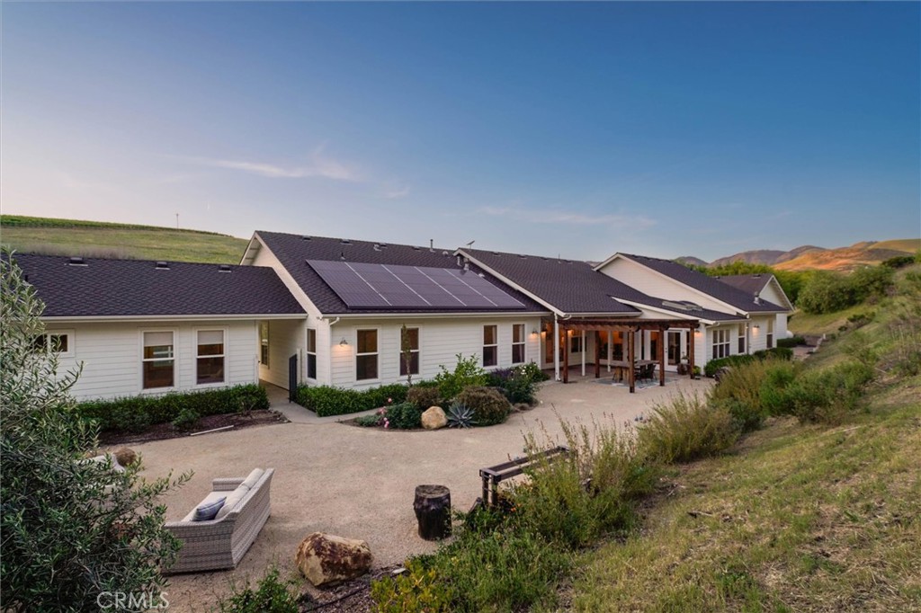 Welcome to a private retreat within the gated community of Edna Ranch, where refined living meets the natural beauty of Edna Valley. Set on a highly usable 1.14 acre parcel surrounded by vineyards, rolling hills, and preserved open space, this single level estate offers an exceptional blend of comfort, functionality, and timeless appeal. Edna Ranch is one of the Central Coast’s most special communities, encompassing over 1,600 acres of protected land with only a limited number of homes thoughtfully positioned to capture the landscape while preserving a true sense of privacy and tranquility. The estate features a 5 bedroom, plus office, 4 bath nearly 3,900 sf single level home with a detached 400 sf 1 bedroom guest suite. The residence features an open floor plan with 10 foot ceilings and an abundance of natural light. The great room anchors the home with a fireplace and built-in cabinetry, flowing seamlessly into the chef’s kitchen with a large island, walk-in pantry, and sunny breakfast nook. A formal dining room and sunroom provide versatility for a variety of lifestyles. The primary suite is a private sanctuary, complete with its own fireplace, dual walk-in closets, and a spa-inspired bath with soaking tub and dual-head shower. Additional bedrooms are generously sized, including one with an en suite bath, while a secondary bathroom offers a large three-sink vanity, soaking tub, and walk-in shower. A hallway storage room and a spacious bonus room above the three car garage add even more flexibility. The home also includes dual zone heating, roof mounted solar, and an EV charger in the garage. The detached guest suite features a kitchenette, bath and laundry, making it perfect for out of town guests. Outdoor living is just as inviting with a large covered front patio, manicured lawn, and multiple areas to relax or entertain while taking in vineyard and mountain views. The backyard is perfect for entertaining with custom pergola, outdoor seating areas, raised garden beds, fenced in orchard space, and an outdoor shower and tub. This is more than a home. It is a rare opportunity to experience the peaceful, vineyard-centric lifestyle that defines Edna Ranch just minutes from world class wineries, downtown San Luis Obispo, the Village of Arroyo Grande, the SLO County Airport, and the coastlines of Pismo and Avila Beach.