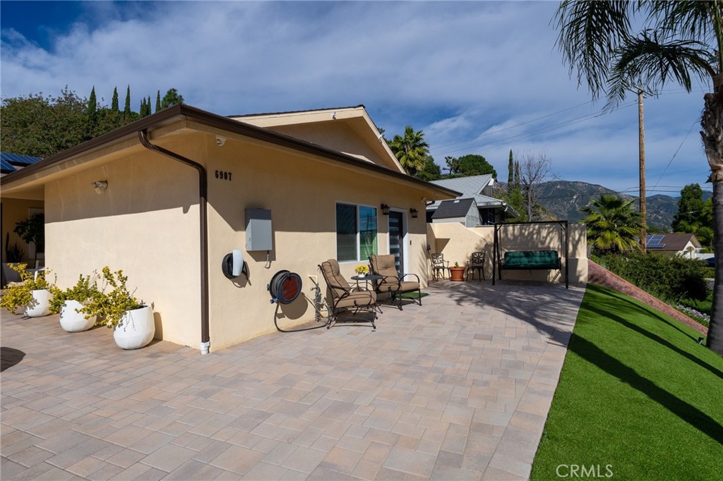 Discover modern living in this beautifully designed, studio ADU that offers a perfect blend of style and efficiency. This pristine unit features a bright, open floor plan with premium wood-style flooring, recessed lighting, and a ceiling cassette mini-split HVAC system for year-round comfort. The sleek kitchen boasts quartz-style countertops, white shaker cabinets, and stainless steel appliances, including a gas range, dishwasher, microwave, and French door refrigerator. Thoughtfully optimized for space, the living area includes extensive wall-to-wall custom wardrobe cabinetry, a concealed wall bed, a mounted flat-screen TV, and a dining table. Additional conveniences include an in-unit stacked washer and dryer and a contemporary bathroom with a fully tiled walk-in shower. Outside, enjoy a private entrance with a spacious, hardscaped patio area. A fantastic opportunity for turnkey, comfortable living!