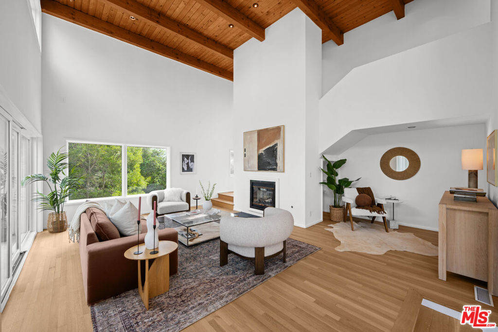 Perfectly positioned in the Hollywood Hills, this residence offers an exceptional opportunity for those seeking both inspiration and convenience. Nestled among lush greenery, this architectural home, built in 1990, represents a classic transitional modern hillside design. Enter through double doors to a dramatic double-height entry, where abundant natural light and serene green views create an immediate sense of openness and calm. The expansive central hall seamlessly connects the living room with its private wood deck to the dining area and kitchen, creating a natural flow ideal for both everyday living and entertainment. The spacious kitchen features a Jenn-Air cooktop, stainless steel appliances, and a large pantry. Thoughtfully designed with an open-concept layout, an early expression of today’s modern living, this home emphasizes volume, light, and connection between spaces. The upper level offers a versatile room with an en-suite bathroom, ideal as a home office, guest room, or third bedroom. On the lower level, the primary suite includes a generous walk-in closet and a large bathroom with dual vanities. Sliding doors open to a private garden retreat featuring an expansive wood deck, jacuzzi with waterfall feature, and lush landscaping. The outdoor space is designed for relaxation and entertaining, complete with a fire pit lounge and a setup suitable for outdoor movie screenings. Enjoy the best of city living with close proximity to Hollywood, Studio City, and the iconic Sunset Strip, offering a vibrant mix of dining, entertainment, and cultural experiences. Convenient freeway access provides an easy commute throughout Los Angeles while maintaining the tranquility of hillside living.