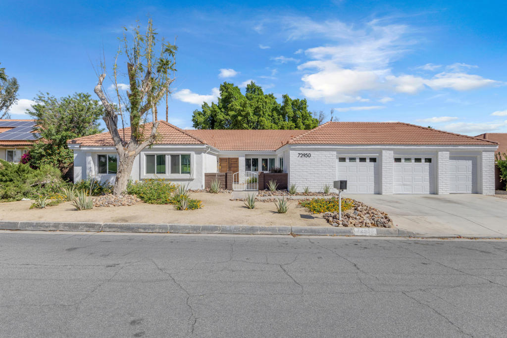 Welcome to 72950 Amber Street in the Canyon Cove neighborhood of South Palm Desert. This 3-bedroom, 2-bath home sits on an 11,325 sq. ft. lot with no HOA and panoramic mountain views.The home has been fully renovated with new flooring, along with new doors and windows throughout. The layout is open, with an updated kitchen and renovated bathrooms. There is also a three-car garage.The backyard is set up for outdoor living and entertaining, featuring a new pool and spa, a large deck and patio, putting green, bocce ball court, and a cabana. The yard is private and surrounded by mature landscaping.Located in a quiet area of South Palm Desert, just behind El Paseo with its mix of local and luxury shopping, restaurants, and nearby spots like Hotel Paseo and The Living Desert Zoo and Gardens. Close to hiking trails, golf courses, and top-rated schools. Schedule your private showing today.