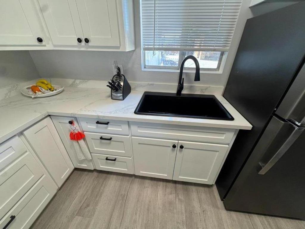Beautifully upgraded 3-bedroom, 1.5 bath home offering 1,134 sq ft of living space on a 7,802 sq ft lot in Hollister. Over $130K in renovations completed in 2024! Features include NEW kitchen cabinets, NEW quartz countertops with peninsula and matching backsplash, gas cooktop with 220V for cooktop & oven, and refrigerator included. New LVP flooring, NEW baseboards, NEW interior paint, NEW blinds, NEW door hardware, NEW light fixtures, NEW outlets, and NEW switches throughout. Central AC & heat and roof are approx. 7 years old. Tinted windows and sliding door (2 yrs old). Bathroom with stall shower. Refrigerator included with the sale. Backyard upgrades include NEW cement, NEW lumber deck, storage shed, NEW heavy-duty metal trellis, cement benches (included), and mature fruit trees: persimmon, orange, lemon, grapefruit, passion fruit, and chicalote. NEW Custom handcrafted man cave and outbuilding add extra flexibility. Termite inspection completed 2 years ago with no issues.