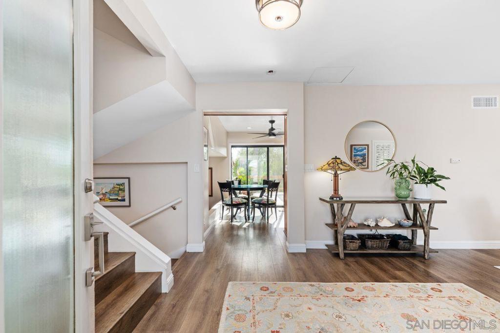 The highlight of this 3BR/2.5BA home is its expansive yard overlooking a tranquil canyon, perfect for relaxing, entertaining, and enjoying nature. A chicken coop/dog run, RV parking, and ample open space create endless possibilities. Inside, luxury vinyl plank floors, upgraded lighting, solid core doors, dual-pane windows, and a remodeled kitchen opening to a wood deck. The family room extends to a covered patio, and comfort is enhanced by owned solar and a new HVAC system. Walking distance to Lake Murray! Other upgrades include: Whole Body Dryer, Ceiling Fans, added insulation, epoxy floors in garage. Newer fridge, washer, and dryer.