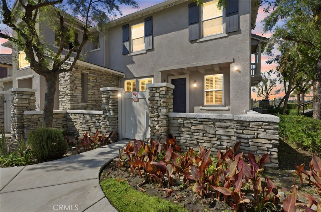 Beautiful corner-unit townhome located in the highly desirable gated Strathmore Community directly across from Victoria Gardens. This spacious two-story home features 3 bedrooms and 2.5 bathrooms with a functional and inviting floor plan designed for comfortable living and entertaining. The home has been beautifully updated with brand-new light white oak wood flooring and fresh interior paint throughout, creating a bright and modern feel. High ceilings and recessed lighting enhance the open layout and bring in abundant natural light. The upgraded kitchen features elegant quartz countertops, a stylish backsplash, and all brand-new stainless steel appliances, along with a newly designed bar area with floating shelves, perfect for entertaining. The downstairs bathroom has been completely redesigned with a floating vanity, concrete countertop, designer fixtures, and modern finishes. Additional upgrades include a new water heater, offering added efficiency and peace of mind. Upstairs offers three spacious bedrooms, including a primary suite with a private balcony and en-suite bathroom. Enjoy a charming front porch, perfect for relaxing or hosting guests, along with a two-car garage and comfortable living spaces throughout. Located within the highly regarded Etiwanda School District and Chaffey Joint Union High School District. Residents enjoy resort-style amenities including a pool, spa, and playground within this secure gated community. Ideally located just steps from Victoria Gardens, offering premier shopping, dining, entertainment, and convenient freeway access. Move-in ready and located in one of Rancho Cucamonga’s most sought-after communities.
