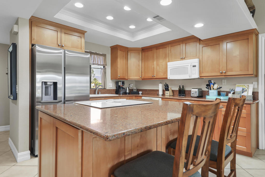 PRICED TO SELL! Offered furnished including golf cart, this beautifully upgraded condo is perfectly positioned on the 14th hole with sweeping lake views and dramatic south-facing mountain scenery. Sunlight pours into the open living spaces, enhanced by diagonally laid tile flooring, recessed lighting, crown molding, and oversized baseboards throughout. The redesigned kitchen has been opened to the living area and showcases granite countertops, a generous island with breakfast bar seating, flat-panel cabinetry with pull-out shelving, and soffit-style recessed lighting–ideal for both everyday living and entertaining. Plantation shutters grace nearly every window. The primary retreat features direct patio access, a large multi-section walk-in closet, and a spa-inspired bath with upgraded cabinetry, granite counters, and a striking tile and glass-block walk-in shower with glass enclosure. Guests enjoy exceptional privacy with a bedroom located on the opposite side of the condo, complete with a Murphy bed, walk-in closet, patio access, and a fully remodeled bath with granite counters and walk-in shower. A dedicated indoor laundry room has been thoughtfully relocated inside the residence for added convenience. Outdoor living shines on the expansive rear patio with multiple seating areas and an Alumawood cover–perfect for relaxing, dining, and soaking in the tranquil lake and mountain views. Attached two-car garage includes built-in cabinetry and excellent storage. A rare opportunity to own a turnkey, view-oriented home that delivers comfort, style, and effortless desert living. Located in the Palm Desert Resorter, where short term rentals are allowed, 18 hole golf course, 2 Bocce ball courts Tennis and Pickleball, 20 pools and spas. Very active clubhouse with bar and restaurant Guard gated community.