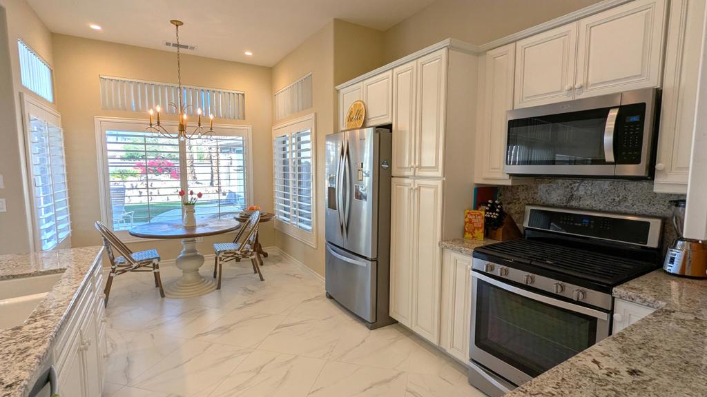 WELCOME to a Beautiful Home with Detached Casita and on a Favorite Sought After Street!Enjoy the best activities @ Del Webb Sun City in Palm Desert. Known as an award-winning 55+ community with top notched tennis courts, golf courses, clubhouses, and recreational clubs to join. Remodeled 3 bedroom, 3 bath property, no condo a stand alone house. Ideal as Rental Investment with Detached Casita with Private Entrance or can be used as a Recreation Room or Guest House. Both the House and Casita have been fully remodeled, and updated with New electrical Led lighting, chandeliers, and new ceiling fans throughout. New faux marble Tile in the entry, kitchen and bathrooms. New plush carpet in living room and bedrooms. All rooms have custom window treatments. Walls and ceilings have new Sherwin Williams decor paint. Bathrooms have all been updated with new toilets. This property is lovely. Looks like a new home. This property is like ‘none’ other in Sun City. It has an extra Large front yard, side yard, back yard with a private front patio and back patio. Privately fenced-in with wrought-iron side gates in the backyard and with stucco wall private fence in the front yard patio. Many colorful bougainvilleas and flowers bloom in the front yard and in the spacious back yard. There is a large Rock Water-Fall pond feature adding charm and beauty to the looks of the property. This large lot property is unique with the house being built at the corner of a Cul de Sac. No houses are built on the side of house making living at this house very private and quiet. Such a gem of a property! Doves can be seen and heard enjoying the Waterfall Pond feature. Many tall Palm trees surround this home. Having a Golf cart space within the oversized 2 car garage is a plus. In Sun City there are sidewalks for walkers and greenbelt parks to enjoy. This property amazes onlookers on how special and private it is to have a huge fenced in backyard with a pretty space to entertain and enjoy. And, has a small stage for amazing star gazing. Beautiful property. Large Enclosed Pet-Friendly Backyard. Well maintained.
