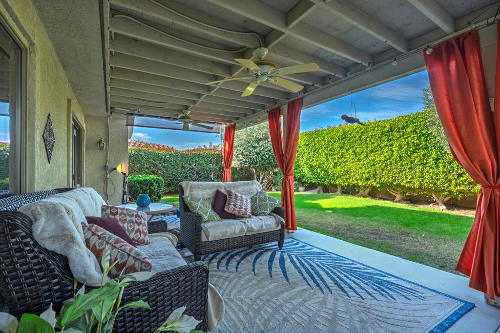 Discover refined desert living at 79354 Calle Sonrisa, nestled in La Quinta community. This beautifully appointed residence offers a bright, open-concept layout with soaring ceilings, abundant natural light, and seamless indoor-outdoor flow. The spacious great room features a cozy fireplace and wide glass sliders that open to a private backyard oasis–complete with a outdoor sitting area, and lush landscaping ideal for entertaining or relaxing under starry skies.The gourmet kitchen boasts stainless steel appliances, a center island, separate pantry, and generous cabinetry. The primary suite is a peaceful retreat with patio access, walk-in closet, dual vanities, soaking tub, and separate shower. Additional guest rooms ensure comfort and privacy for family or visitors. You will enjoy the super low hoa here as well.Located near world-class golf, tennis, shopping, and dining, this home blends resort-style tranquility with everyday convenience. Perfect as a full-time residence, seasonal escape, or investment opportunity–Calle Sonrisa is where comfort meets classic La Quinta elegance.