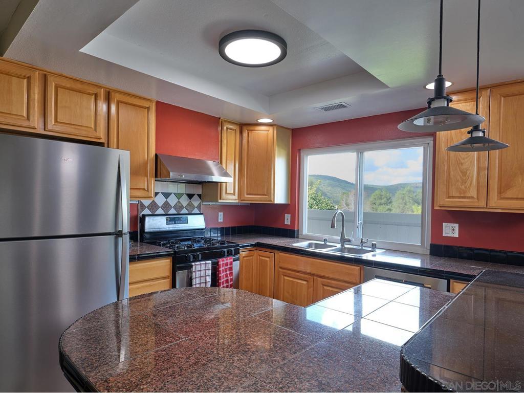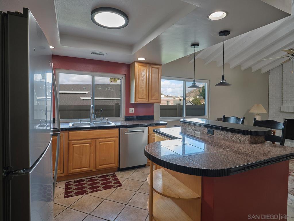 This well-maintained, move in ready home is located on a quiet street in the desirable San Carlos neighborhood. Walk to Mission Trails Park. Single Story with vaulted ceilings, open Kitchen with granite tile breakfast bar, pendant lighting, stainless Steel appliances. Large Family Room w/fireplace and French doors to the Patio and lush backyard. Beautiful Landscaping. Mountain views from kitchen and living room, Backyard is perfect for entertaining. Private yard no neighbors behind, open space. Large patio, terraced bank with fruit trees. Synthetic Turf. Newer HVAC, some newer appliances. Whole House Fan too. City of San Diego but bordered by Nature. Mission Trails Park offers hiking, mountain biking, Visitor Center. Close to Lake Murray, Cowles Mountain. All this outdoor beauty yet minutes to downtown, Mission Bay, Beaches and more.