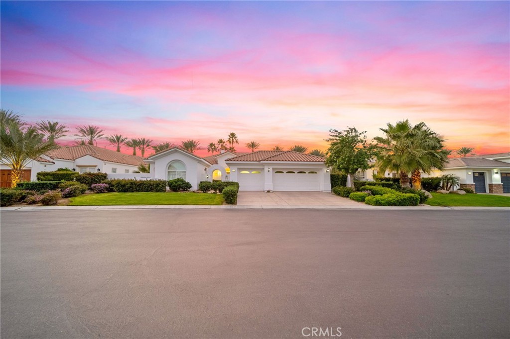 Welcome to your private desert retreat in the prestigious Mountain View Country Club in La Quinta, ideally situated just off the 8th hole of this highly sought after Arnold Palmer designed golf course community. This exceptional residence offers the perfect blend of luxury, comfort, and resort style living. Spanning over 3,600 square feet, this beautifully appointed home features 4 bedrooms and 4.5 bathrooms, including a private guest casita ideal for hosting friends and family with comfort and privacy. Inside, modern elegance meets timeless design with new flooring throughout, creating a warm and inviting atmosphere. The thoughtfully updated kitchen is a true centerpiece, showcasing high-end appliances, refined finishes, and generous workspace, perfect for both everyday living and entertaining. Additional highlights include a 3 car garage with built-in cabinetry, providing ample storage and functionality. Step outside to a stunning west facing backyard designed to capture breathtaking sunset views over the surrounding desert mountains. This expansive outdoor oasis features a large pool and spa, built-in barbecue, and multiple seating and entertaining areas, making it ideal for hosting gatherings or enjoying peaceful moments of relaxation just steps from the fairway. As a resident of Mountain View Country Club, you’ll enjoy access to an exceptional clubhouse and world-class amenities, including championship golf on the Arnold Palmer course, tennis, pickleball, and a vibrant social scene all within one of the Coachella Valley’s most desirable private communities. This is desert living at its finest where elegance, leisure, and location come together seamlessly.