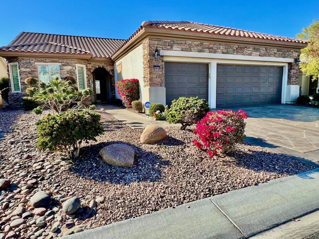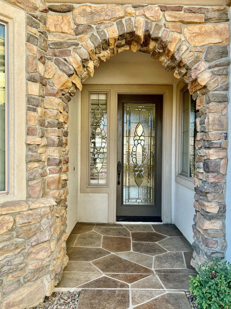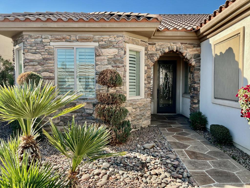 Come See a San Benito Home newly updated w/Brand New Carpet & Fresh, Soft-Toned Paint. Attractive Stone Facade, Decorative Stone Driveway, Manicured Landscape w/New, Accent Lighting all create a Great Curb Appeal. The Beautiful, Leaded-Glass Front Door leads to an Open Floor Plan which includes a Spacious Entry, Extended Great Room, Dining Area, Den & Bonus Room. The Huge Kitchen w/Slab Granite Counters, Center Island, Cabinets w/Pull-outs has a Large, Casual Dining Area. Quality Carpet, Ceramic Tile, Wood Shutters & Fans throughout. The Primary Suite is Luxurious in Size w/Door to Patio & Sun Screen. Primary Bath w/Double-Sink Vanity, Sunken Tub, Step-in Shower, Linen Closet & Walk-in Closet. Guest Room has Mirrored Wardrobe; Bath w/Tub/Shower w/Glass Doors. Utility Room has Ample Cabinets & Sink. The Extended Patio is protected from elements by Drop Sun Shades & Alumawood Cover. The S/W Facing Rear Yard is Wonderful. Attractive, Low Maintenance Landscape, Artificial Grass & Trees encircle a Beautiful Stone Fountain. The Best Part of this Lot Location is the View!!! The Home sits above the lot behind, affording a Grand View of the Mountains & Glorious Sunsets. The 3-Car Garage has Storage Shelving, Side Access Door, Outside Door Openers. This Lovely Home is Move-in Ready, just Waiting for YOU!