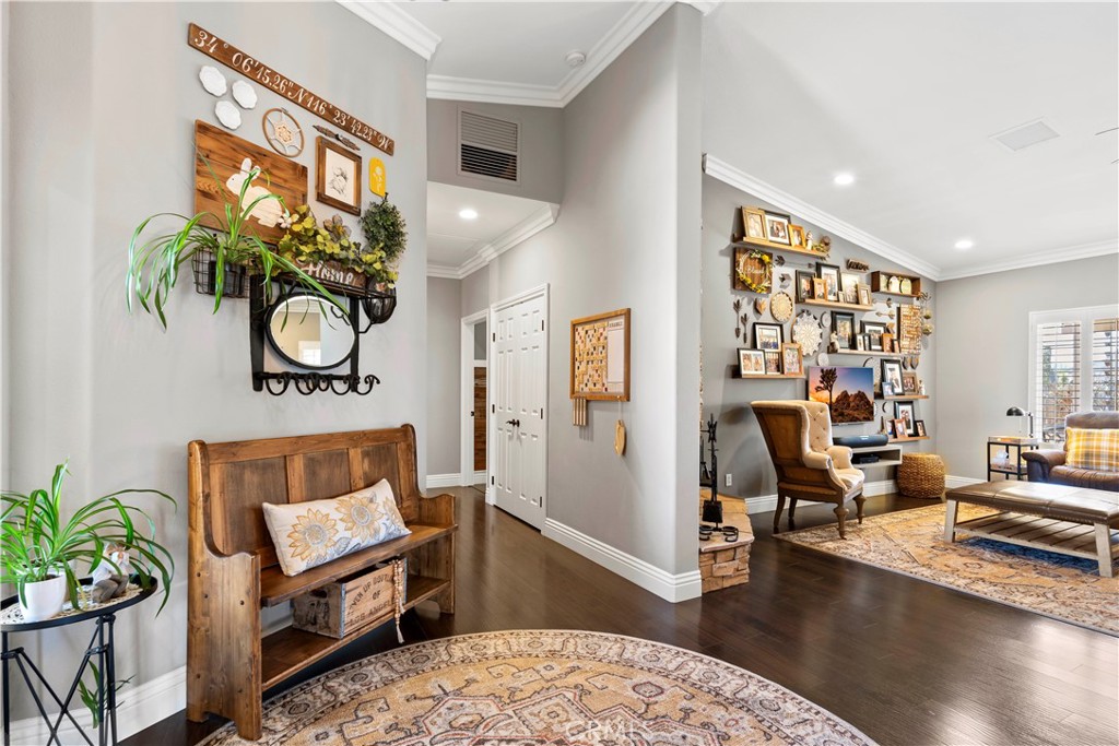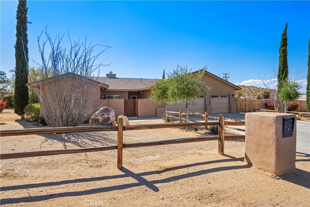 Discover this beautiful, meticulously designed desert home. This 3-bedroom, 2-bath home welcomes you with a charming courtyard. The interior boasts a cohesive design with a touch of sophistication. Plantation shutters allow for privacy and light control. Elegant details include crown molding and baseboards. Custom light fixtures throughout illuminate the space beautifully. A Farmhouse-style kitchen seamlessly blends rustic charm with modern convenience, featuring granite countertops, new stainless steel appliances, and shaker-style cabinetry with lighted upper glass-faced cabinets. Under-cabinet lighting, soft-close cabinet hardware, and customized pantry shelving enhance functionality. The custom-built desk area adds versatility for daily tasks. Dark wood laminate flooring seamlessly connects the open-concept living, dining, and kitchen areas. High ceilings create an airy ambiance, while the custom rock fireplace adds warmth and charm. Abundant natural light floods through well-placed windows. Plus, enjoy cozy evenings with the custom air-tight wood stove. As you step into the primary bedroom, you’ll be captivated by the custom wood wainscoting that offers refined comfort. Enjoy two large walk-in closets. The main bath features dual sinks, a luxurious soaking tub, and a generously sized walk-in shower adorned with floor-to-ceiling tile. The second bedroom exudes elegance with wainscoting adorning the walls. The room boasts a spacious walk-in closet. The second bath features a granite countertop and a custom sink installation. An added linen cabinet provides convenient storage. The third bedroom/office stands out with its custom cabinetry. The enchanting home’s outdoor space is adorned with mature trees and a thriving vegetable garden. Enjoy your morning coffee on the wrap-around patio, complete with a built-in BBQ for culinary delights. It includes new fencing, an automated watering system, a raised bed garden, shaded seating, a built-in BBQ, outdoor dining, illuminated shade, charming yard art, grapevines, and RV hookups. This outdoor paradise is more than a yard—it’s an invitation to create lasting memories. This desert retreat awaits its new owner—schedule a viewing today!