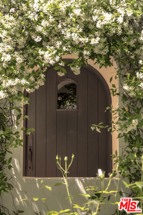 Chic designer Spanish in the heart of Melrose Village’s most coveted pocket. Fully gated and completely private, this reimagined residence blends timeless architecture with a distinct, editorial sensibility by AD100 interior designers Pierce & Ward. The main house offers 3 bedrooms and 3 baths, where coved ceilings, arched forms, and French doors create a seamless indoor-outdoor flow anchored by rich hardwood floors. The kitchen pairs vintage charm with modern performance, featuring an iconic O’Keefe & Merritt range, Sub-Zero refrigeration, Wolf built-in microwave, and Asko dishwasher, all complemented by a custom bar designed for effortless entertaining. Original details remain thoughtfully preserved, including a Batchelder fireplace, while elevated finishes such as heated floors, a steam shower with triple heads, and a Toto Japanese toilet bring a refined edge to the primary suite. Step outside to a west-facing garden retreat wrapped in fragrant jasmine, with a fountain, dining pavilion, and a striking pool that feels both serene and cinematic. A fully permitted guest house with 1 bedroom, 1 bath, and flexible office or gym space adds versatility. Collected, character-driven detailsMoroccan-imported closet doors and a bath featuring a pink sink and toilet sourced from the Dorothy Chandler estate alongside a lilac bathtub underscore the home’s one-of-a-kind personality. A rare offering where design, privacy, and location converge this is Melrose Village living at its most compelling. OFFERS ARE DUE ON THURSDAY, APRIL 23RD AT 12PM.
