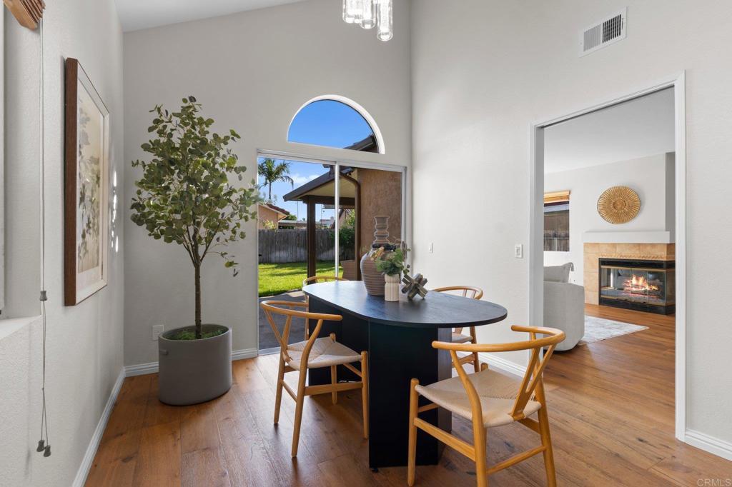 Welcome to 8429 Corte Fragata, where tasteful upgrades and modern comfort come together in one of the most sought-after neighborhoods. Step inside to vaulted ceilings and a bright, open layout with high-end French white oak engineered hardwood flooring throughout, complemented by tile in key areas and brand-new carpet. The fully remodeled kitchen features stainless steel appliances, recessed lighting, abundant cabinetry, and a built-in breakfast nook with added storage. The primary suite offers a peaceful retreat with a walk-in closet and a shower-tub combo for added relaxation. A cozy fireplace warms the family room, while sliding doors lead to a spacious backyard oasis with lush, well-maintained grass. Unwind under the covered pergola, complete with custom sun shades and a ceiling fan, ideal for year-round outdoor enjoyment. Additional highlights include a newer roof and fresh interior paint, making this home truly move-in ready. With top-rated schools within walking distance, quick freeway access, and nearby shops and eateries, this home offers comfort, style, and everyday convenience in a prime location!