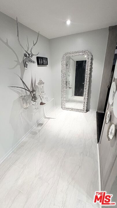 Located in the iconic mid century Kings Plaza, this recently remodeled West Hollywood condo offers a refined, moody aesthetic with timeless architectural appeal. Updated with a darker, more dramatic palette, the home balances elevated design with everyday comfort. With over 1,000 square feet of living space, it is among the largest one bedroom residences currently available in West Hollywood. Espresso toned hardwood floors run throughout, anchoring the open living space. Floor to ceiling glass sliders bring in natural light and open to a private balcony, creating a seamless indoor outdoor flow. The remodeled kitchen features sleek custom cabinetry, stainless steel appliances, and contemporary finishes. Updated bathrooms offer a clean, spa inspired feel with modern fixtures. The primary suite serves as a calm retreat with expansive windows and a comfortable, hotel-like atmosphere. Residents enjoy a landscaped courtyard with a heated pool and spa. Centrally located in West Hollywood, the building is moments from the Melrose Place Farmers Market, popular dining, boutique shopping, and Melrose and Santa Monica Boulevard. A standout opportunity to own a remodeled residence in one of West Hollywood’s most desirable mid century buildings.